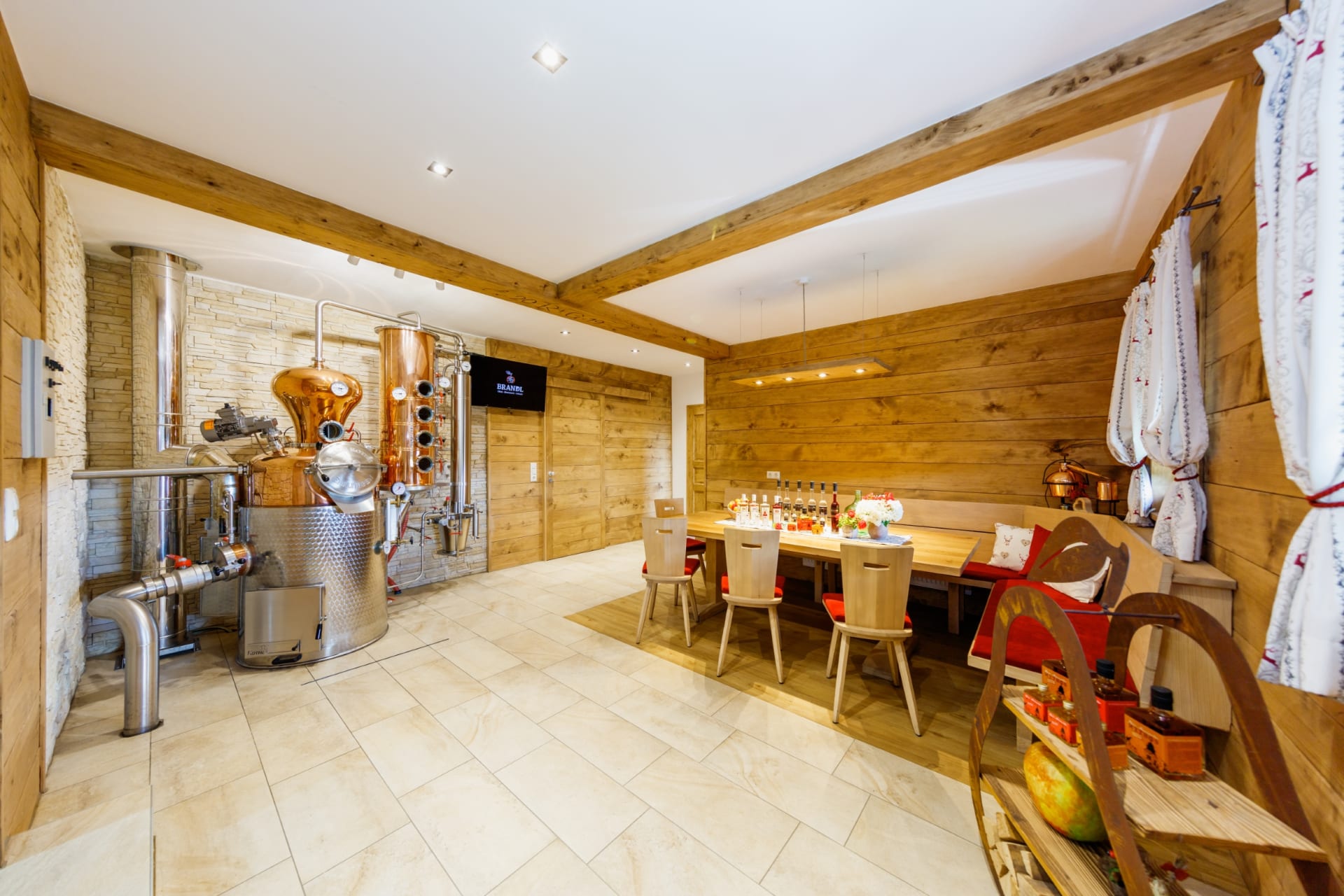Die neugebaute Brennerei lädt zu Verkostungen von Edelbrand, Gin und Rum ein.