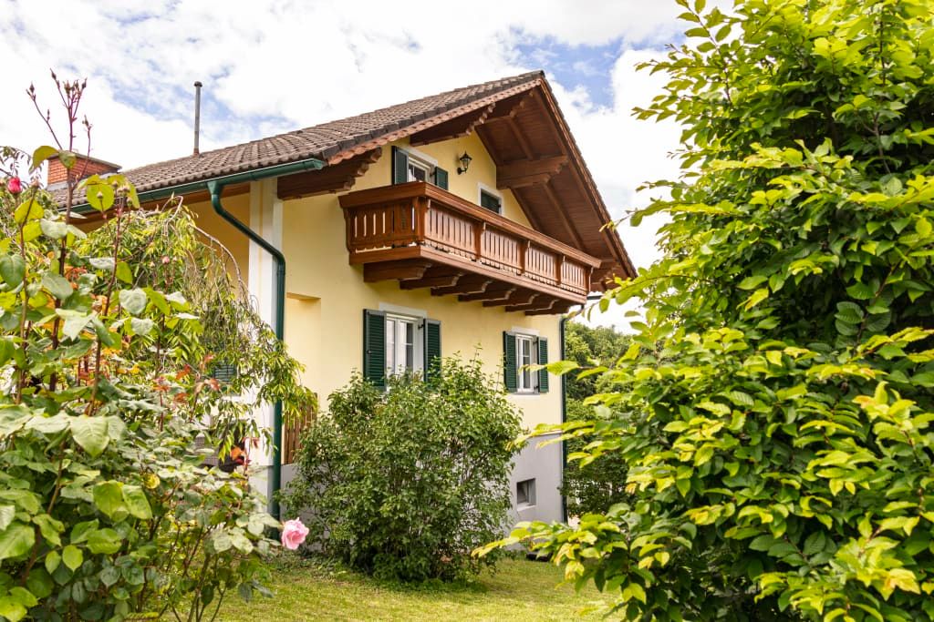 Der eigene Eingang führt direkt auf die sonnige Terrasse – mit traumhaftem Blick über das Steirische Vulkanland. Vor der Tür laden Gartenmöbel und Liegen zum Entspannen ein.