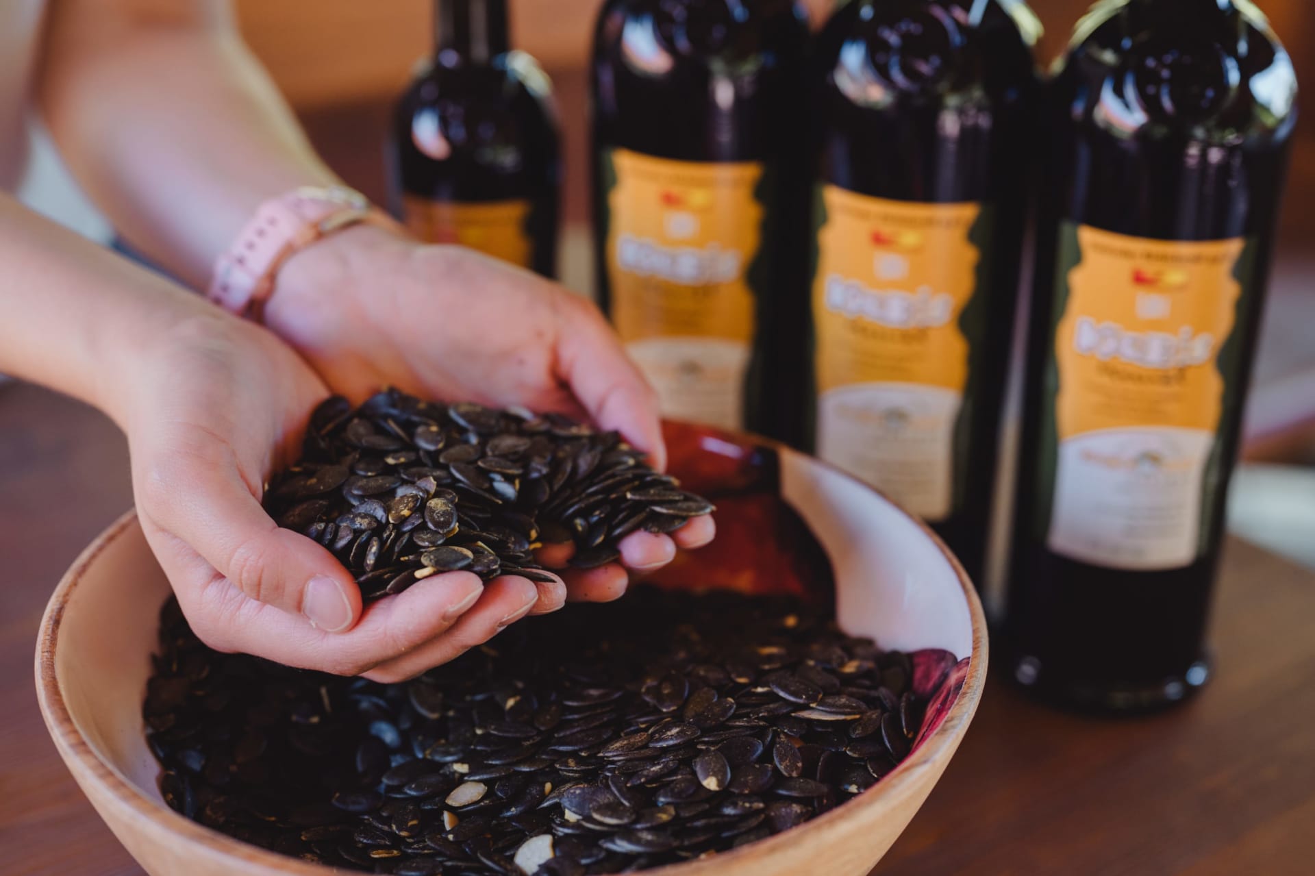 Auf unseren Äckern kultivieren wir den Steirischen Ölkürbis, Mais, Soja und Vulkanlandweizen. Im Hofladen gibt es unser echtes Kürbiskernöl und viele andere Produkte der Region.