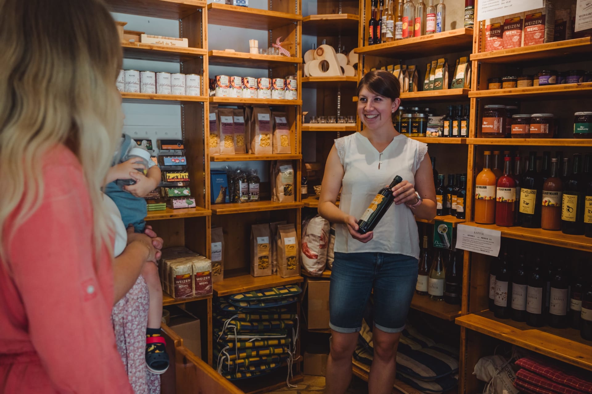 • Die nächste Verpflegungsmöglichkeit (Gasthaus, Supermarkt, Hofladen) ist 3 km entfernt.