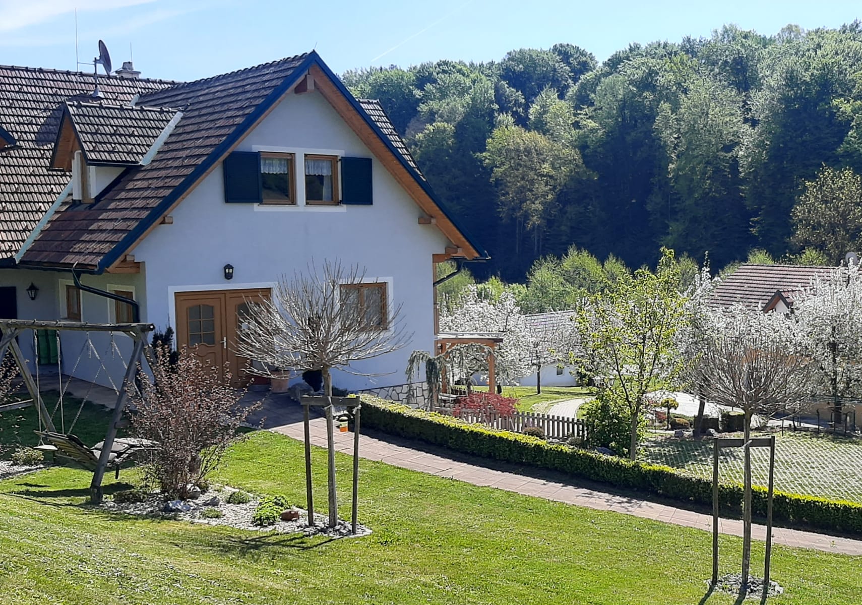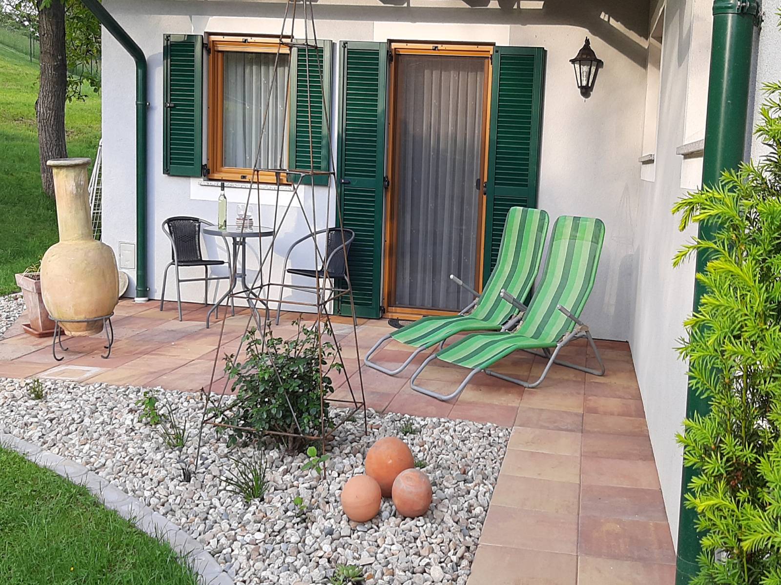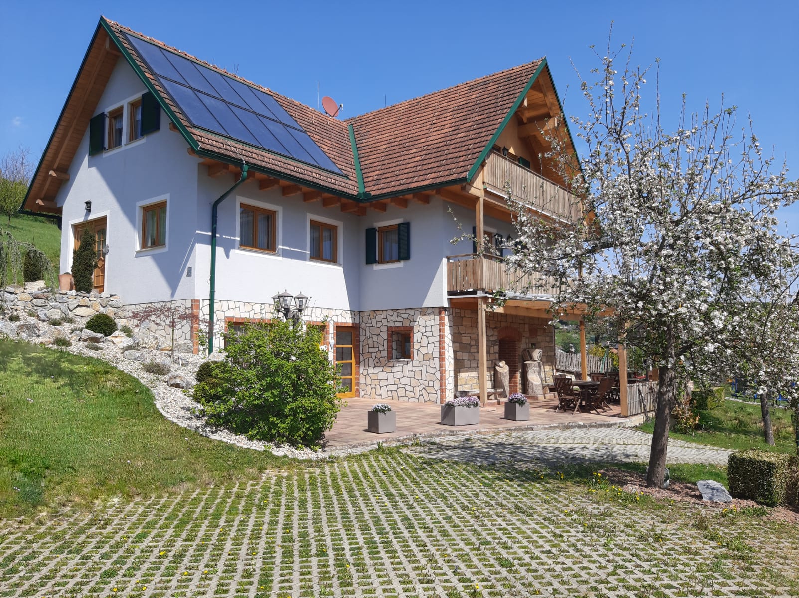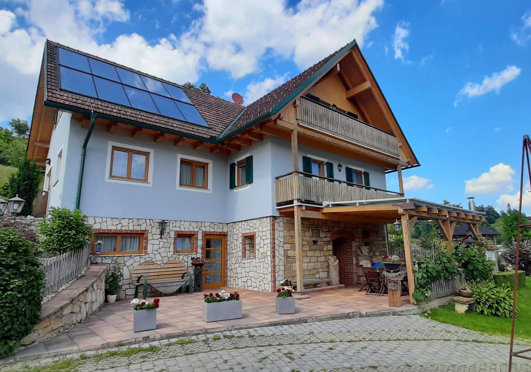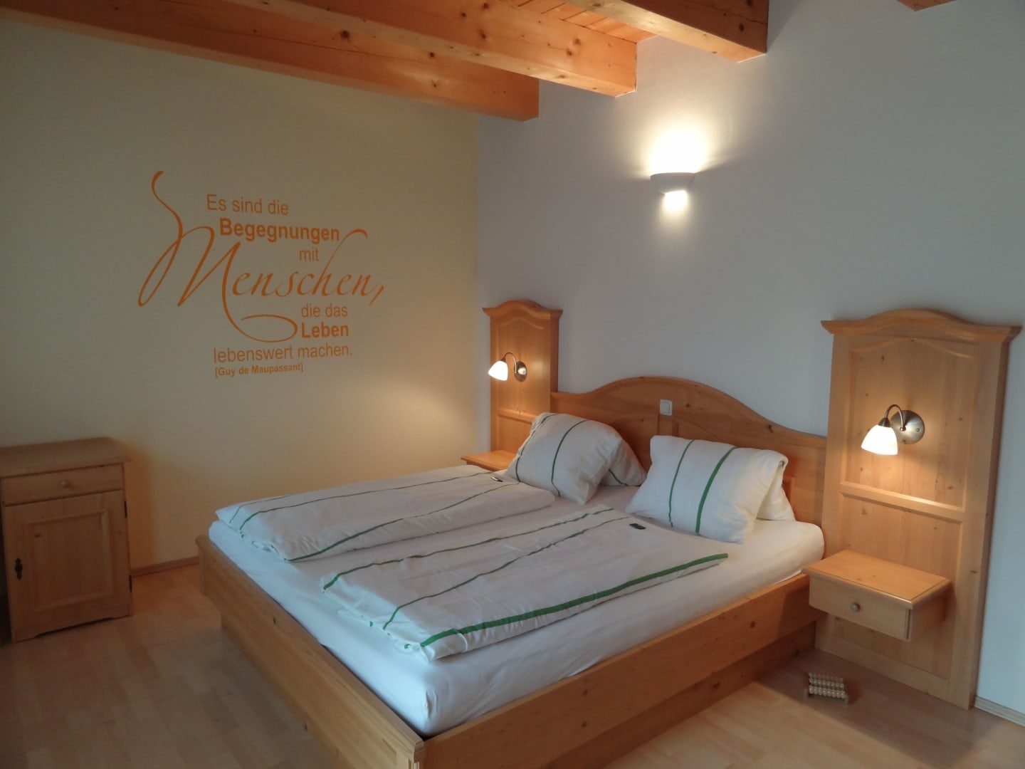 Entspannen und schlafen Sie sich gesund in unseren Wohlfühl- Räumen, welche mit hochwertigen Naturholzmöbel bestens ausgestattet sind. Für romantische Abende zu zweit steht Ihnen unsere idyllische Gartenlaube, umrankt von süßen Weintrauben, zur Verfügung.