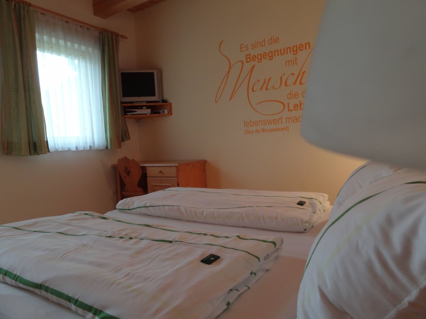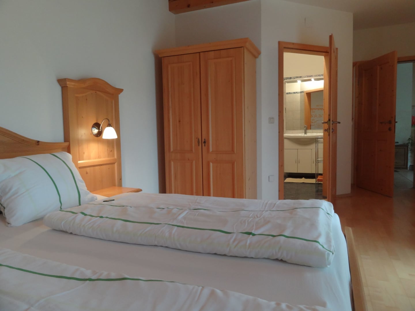Dieses Doppelzimmer gibt es zusätzlich zur Ferienwohnung Sonnengruß. Unser helles, freundliches Komfortzimmer Abendsonne ist mit Vollholzmöbeln und einer Holzdecke sehr gemütlich ausgestattet. LCD Flachbildschirm für ein entspanntes Fernsehen in den Abendstunden und Internetanschluss sind im Zimmer vorhanden. Zudem hat es über eine wunderschöne Terasse direkten Zugang ins Freie.