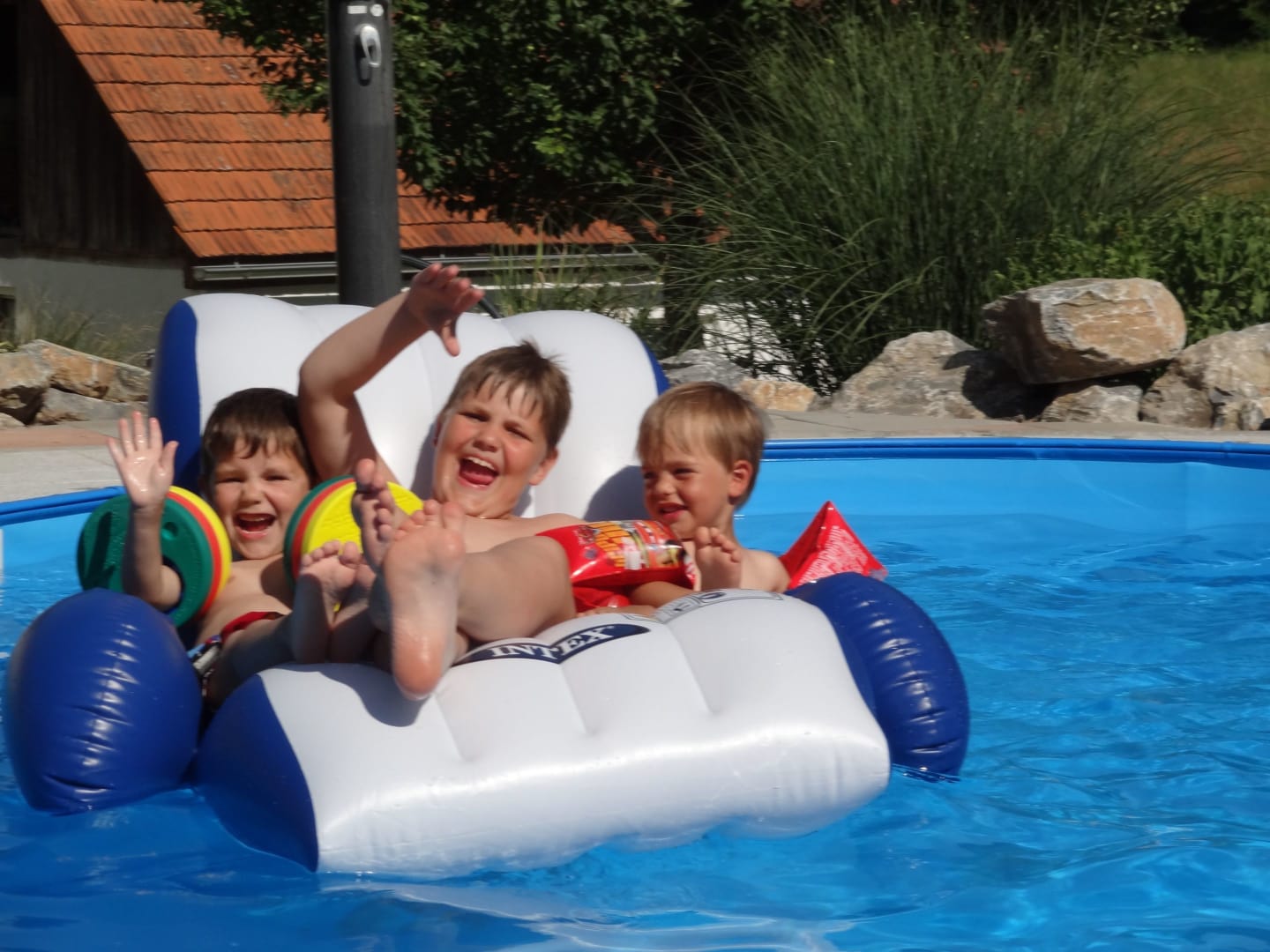Für die Kleinen bietet ein Spielplatz vor dem Haus und unsere Ponys, Ziegen, Hasen, Katzen und Meerschweinchen eine gelungene Abwechslung.