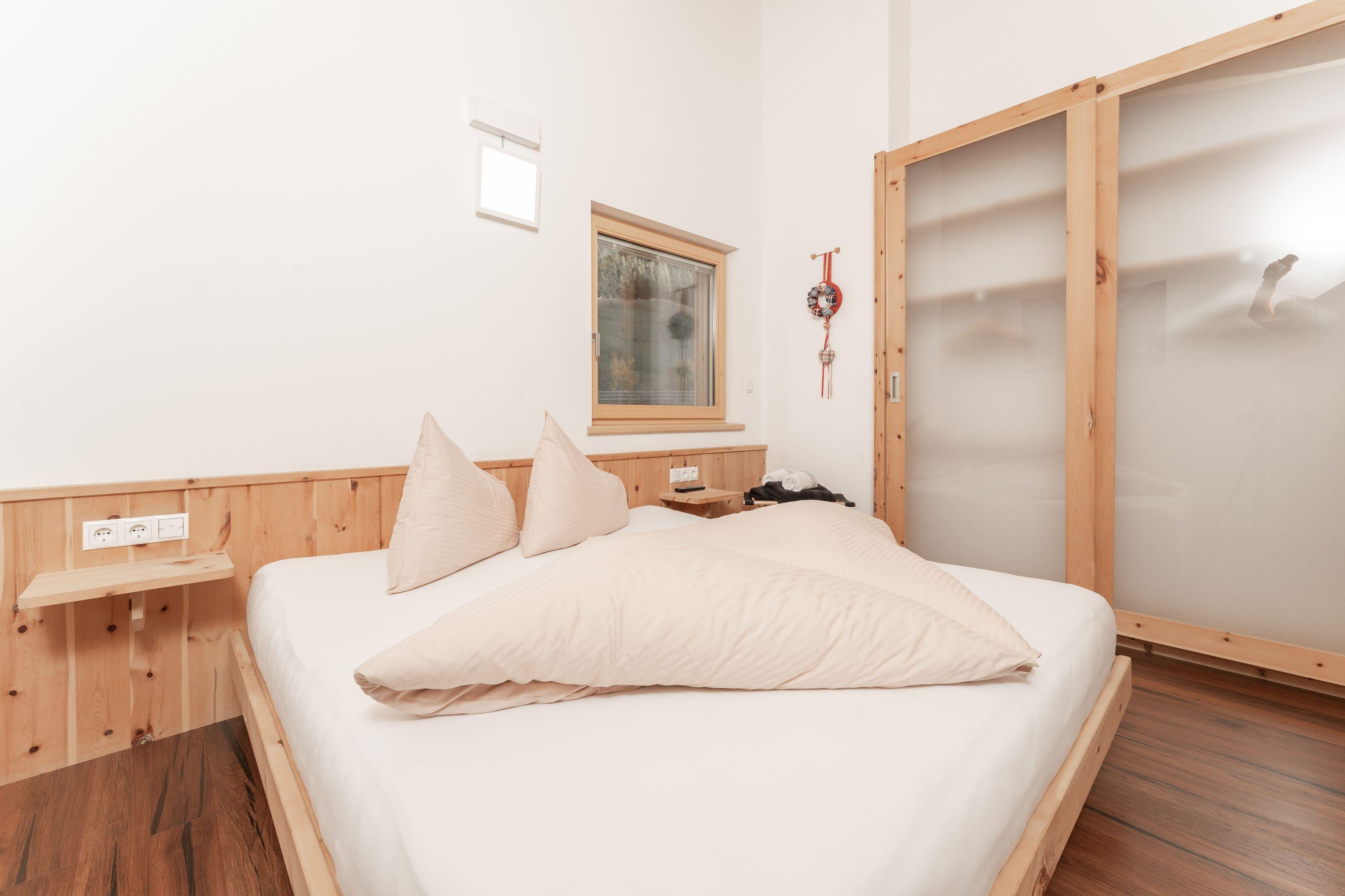 Ihr Appartement verfügt über 2 getrennte Schlafräume mit Zirbenholz-Doppelbetten, ein Sofa als Zusatzbett (2 Pers.), 2 getrennte Bäder mit DU/WC, 1 großer Wohnraum mit Sitzecke und Schreibtisch mit Sitzgelegenheit, 2 getrennte Kitchenetten und Balkon. Dieses Appartement ist auch einzeln als Doppelzimmer Die Maisonette und Heimat Liebe buchbar. Das Frühstück ist inklusive.