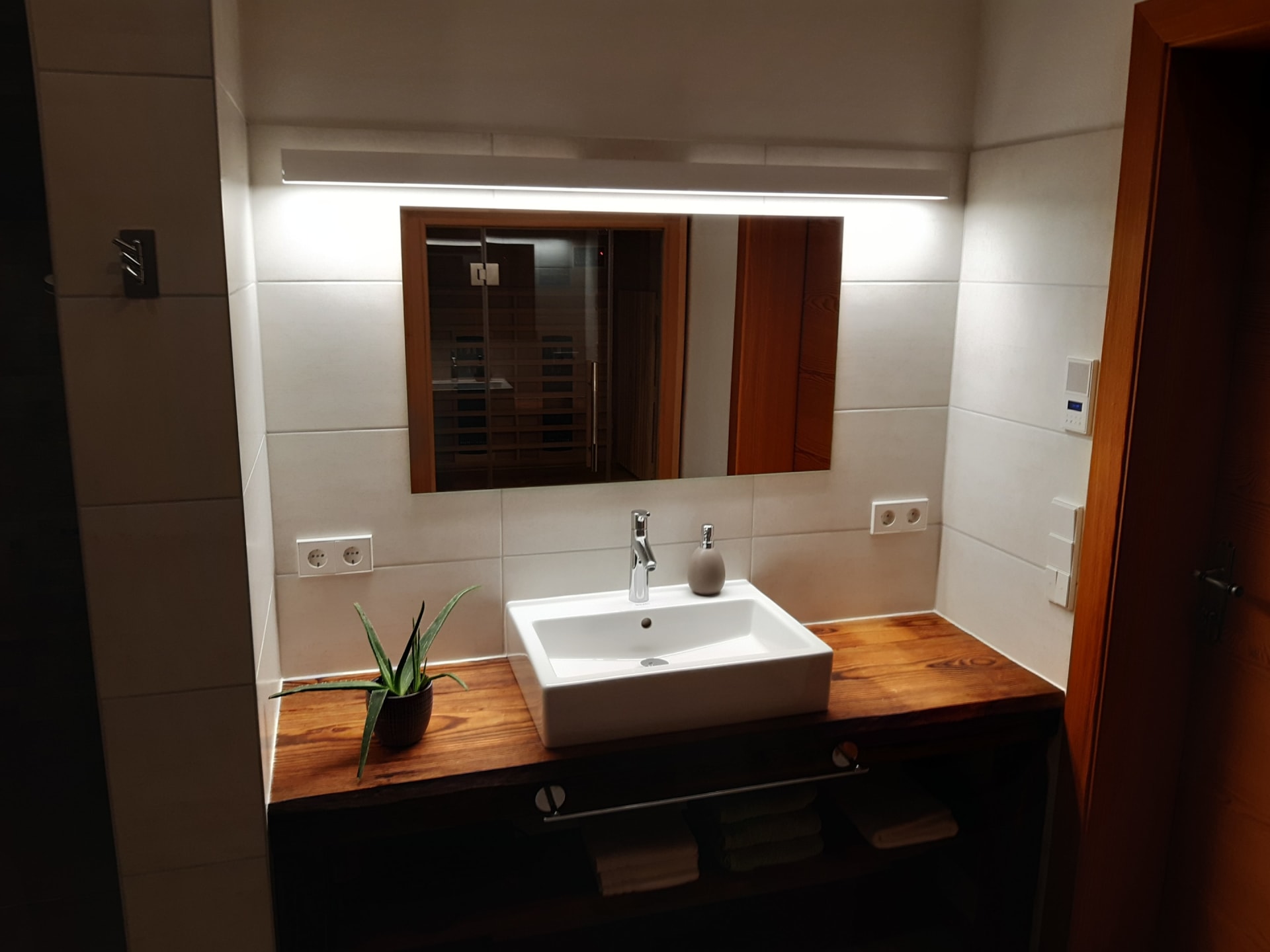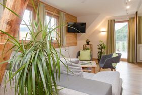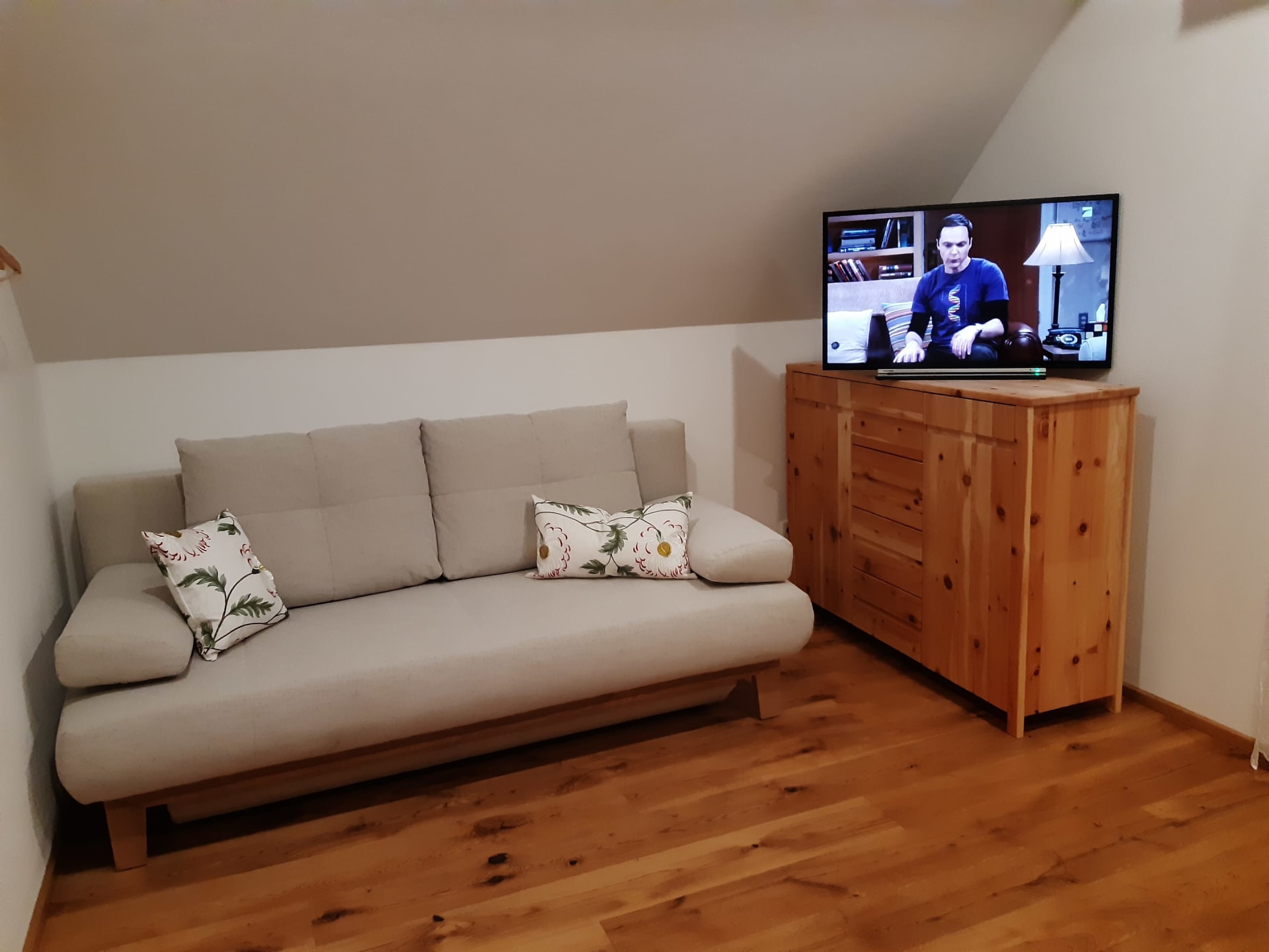 Die Wohnung ist gemütlich und modern mit Vollholzmöbeln ausgestattet und bietet Ihnen allen Komfort für einen angenehmen Aufenthalt. Bad und WC sind getrennt.