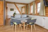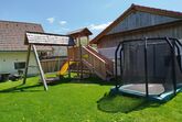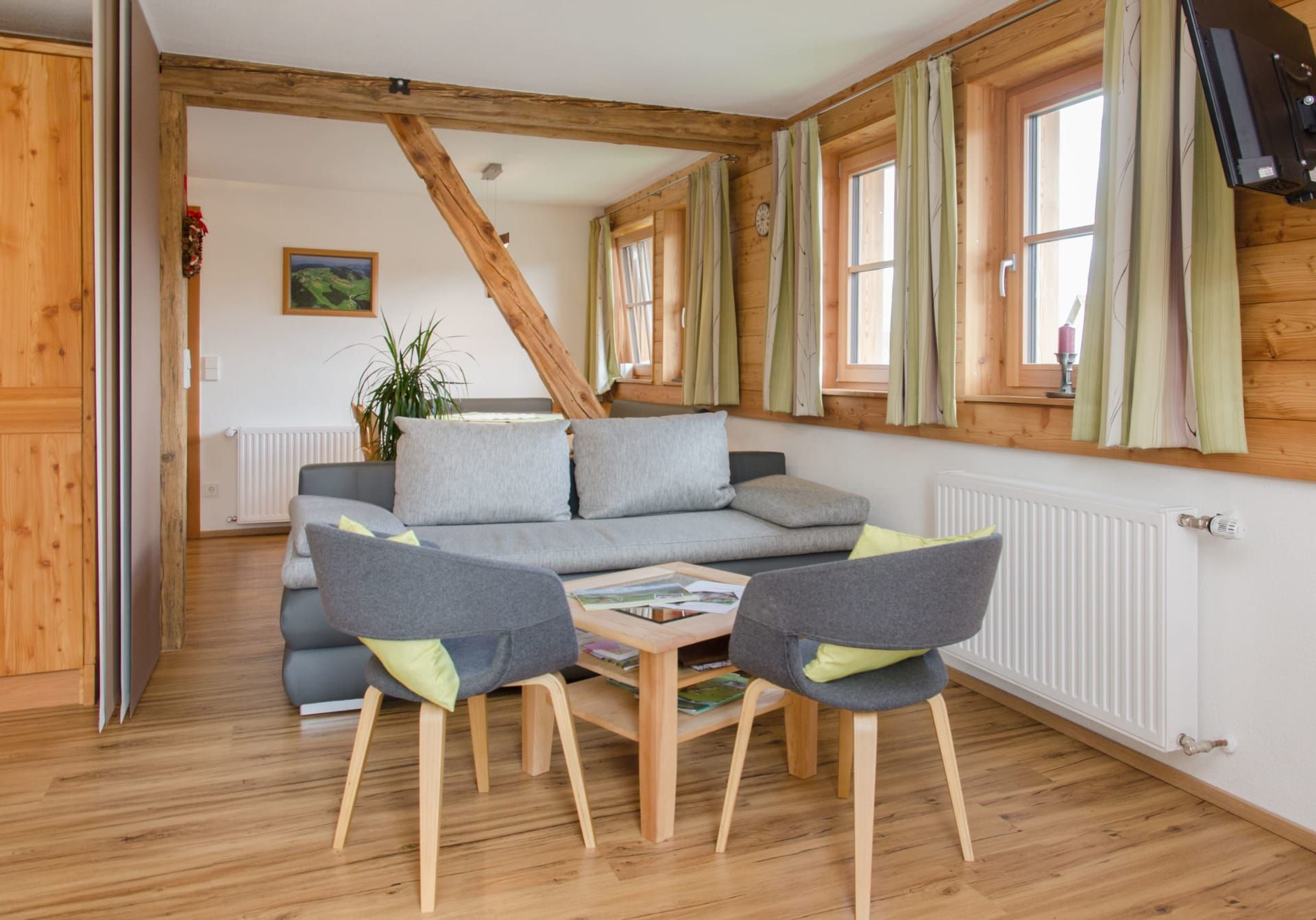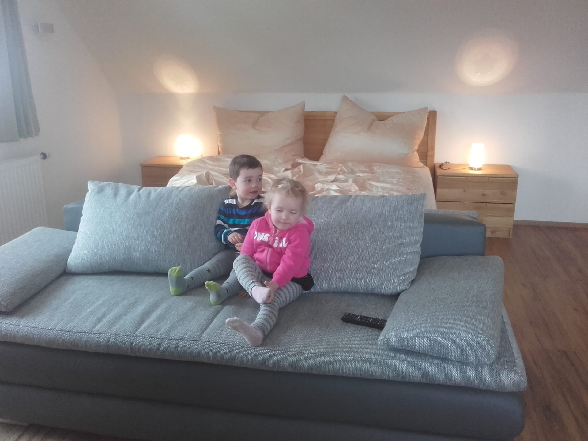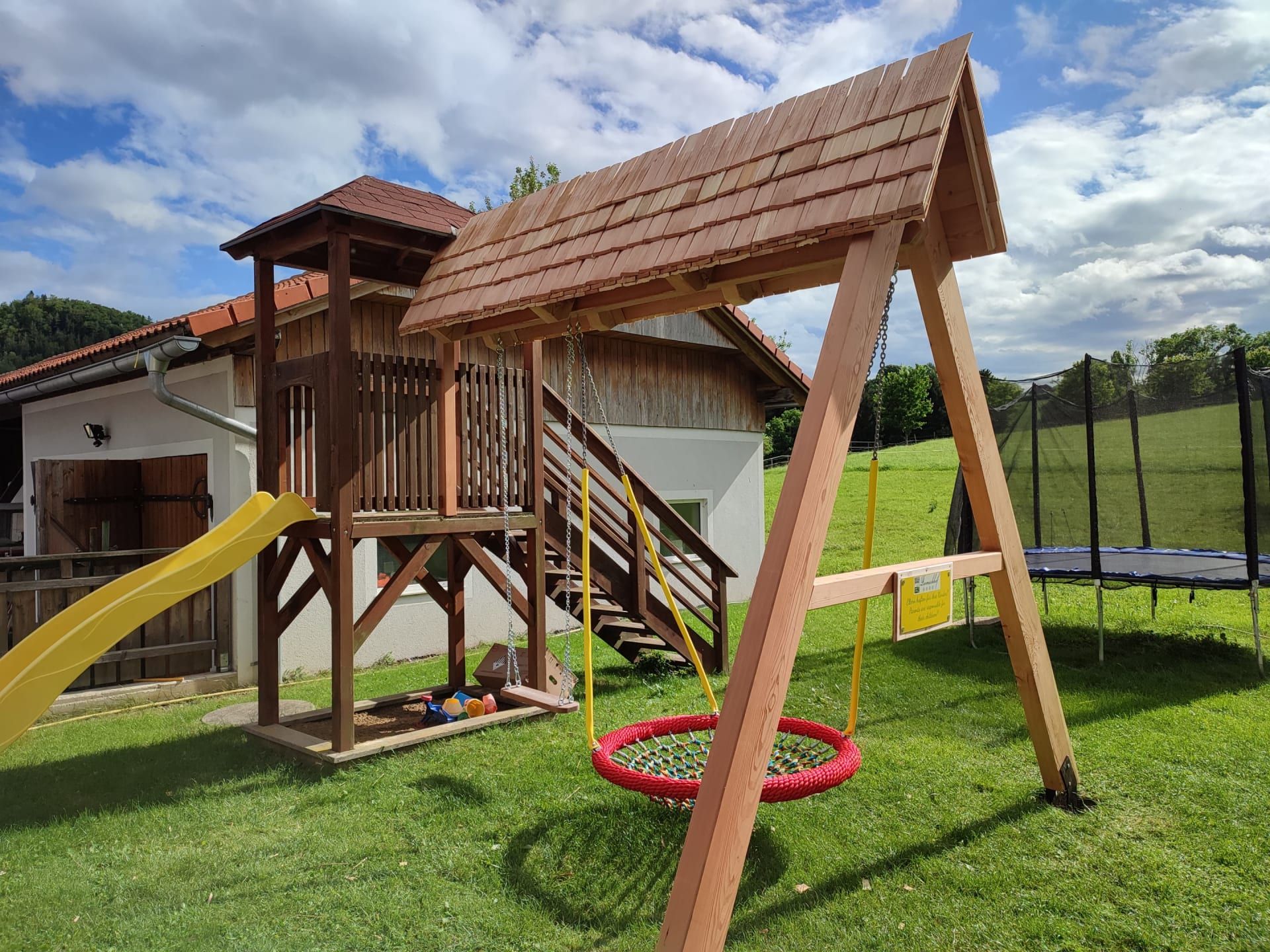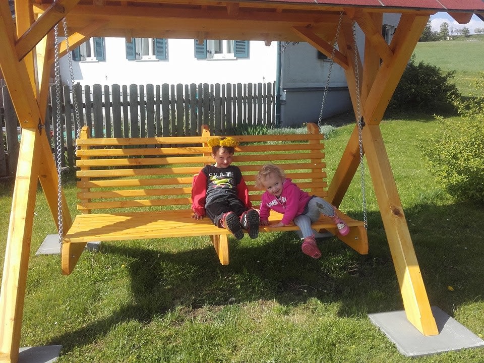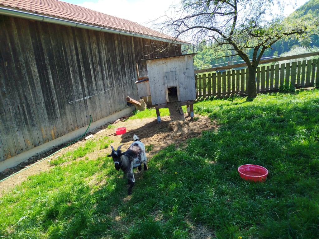 Die Ferienwohnung ist neu ausgebaut und vollständig ausgestattet. Von der Terrasse überblicken Sie das Geschehen am Hof und den Kinderspielplatz.