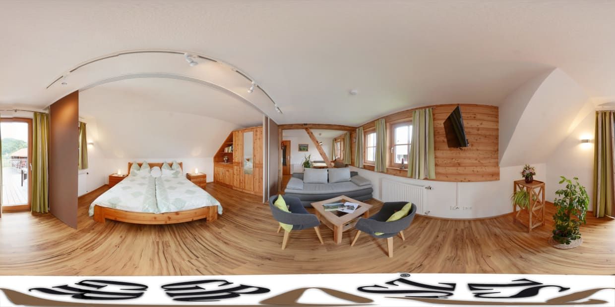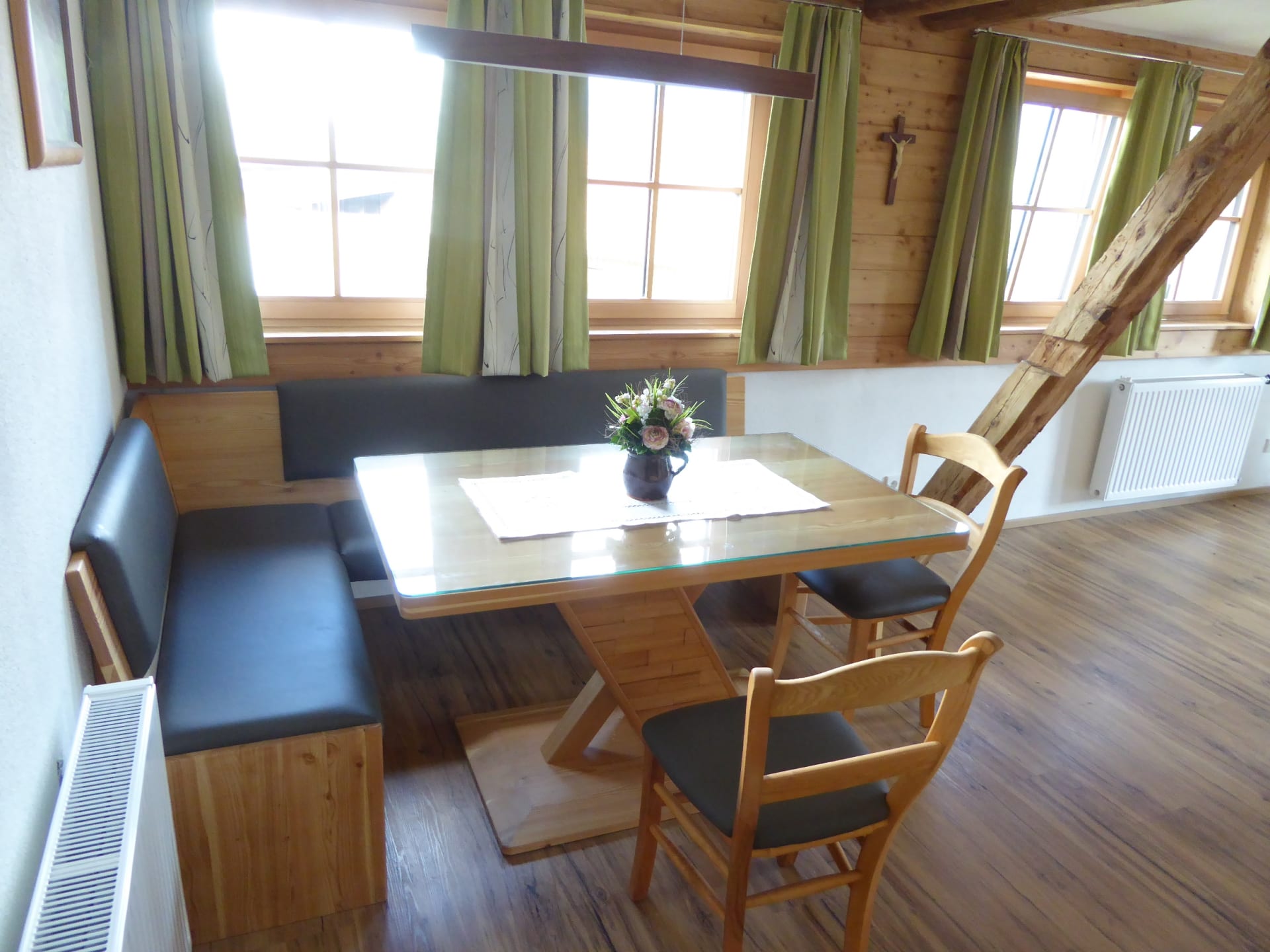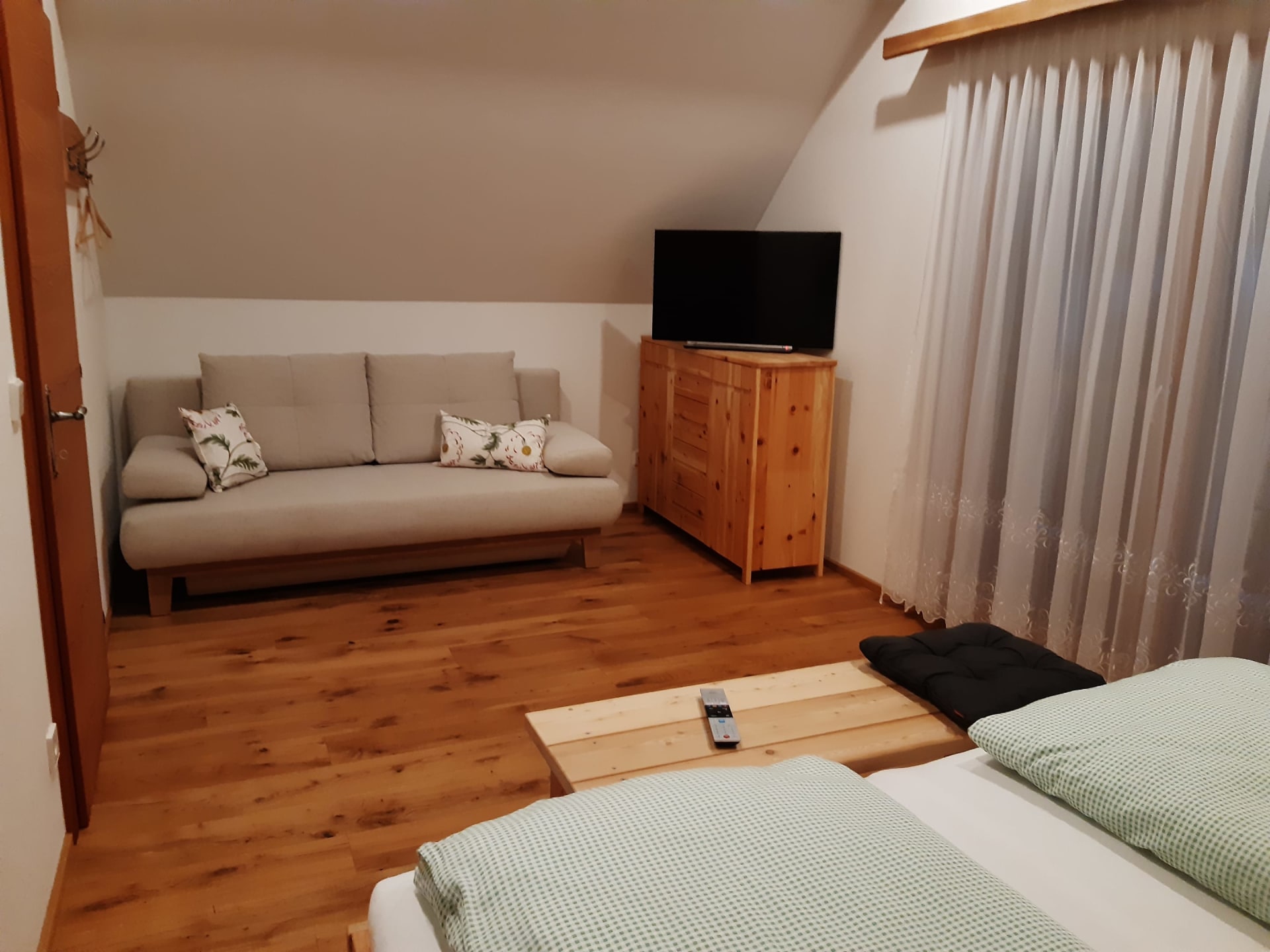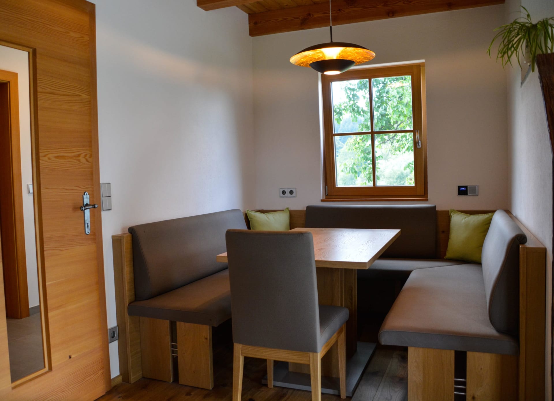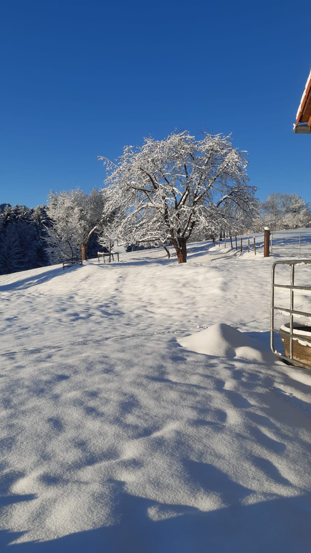 Die Ferienwohnung ist neu ausgebaut und vollständig ausgestattet. Von der Terrasse überblicken Sie das Geschehen am Hof und den Kinderspielplatz.