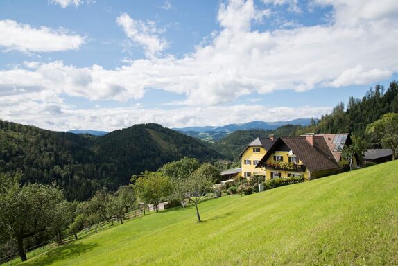 Unser Bergbauernhof liegt inmitten unberührter Natur, nordwestlich der steirischen Landeshauptstadt Graz. Auf 720 m Seehöhe bietet unser idyllischer Hof Ruhe, Erholung und Natur pur. Hier finden Sie alles, was einen echten „Urlaub am Bauernhof“ ausmacht: Tiere in freier Natur, ruhige Wälder zum Wandern und Schwammerlsuchen, sowie Plätze zum Entspannen und Krafttanken.