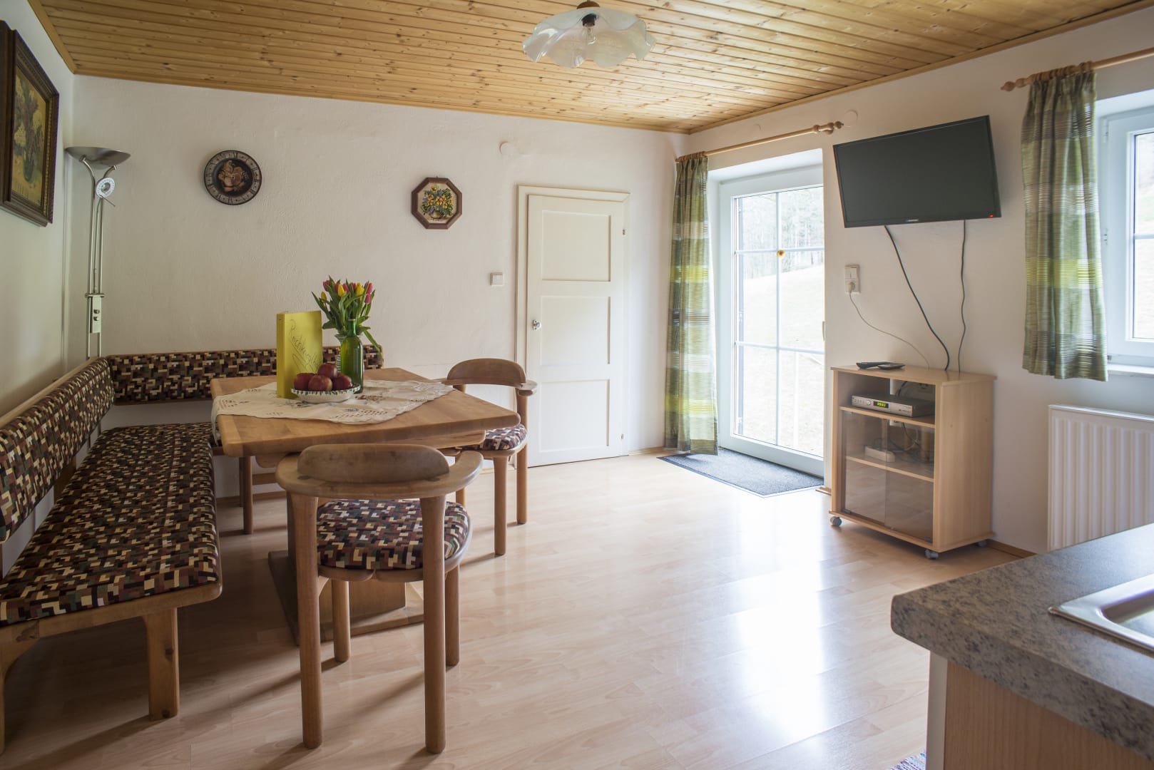 Mit einem vielfältigen Angebot regionaler Produkte wird Ihr Aufenthalt auch kulinarisch zum Genuss. Unser Hof mit Kühen, Katzen und Hasen ist ein wahres Kinderparadies – der liebevoll gestaltete Spielplatz lädt zum Toben ein. Werden Sie Teil des bäuerlichen Alltags: helfen Sie beim Heuen, Füttern, Eierholen oder erleben Sie die Arbeit mit unseren Tieren hautnah.