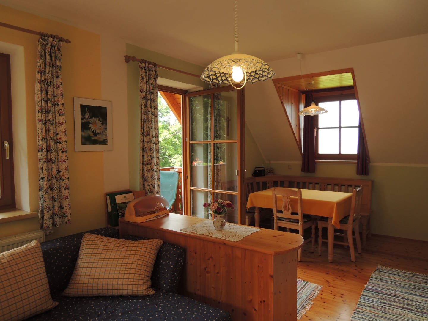 Auf Sie warten 2 gemütliche, helle Ferienwohnungen mit Balkon für 2 bis 5 Personen. Die waldreiche Umgebung lädt ein zum Wandern und Spazieren. Ihre Kinder können sich am Spielplatz austoben.