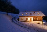 Das behagliche Holzhaus mit allem Komfort liegt auf 750 m Seehöhe in sonniger Einzellage. Rundum verschneite Wiesen, eine sanfte bäuerliche Landschaft, Ruhe und Natur. Raum zum Wandern, Laufen, Staunen und Genießen.