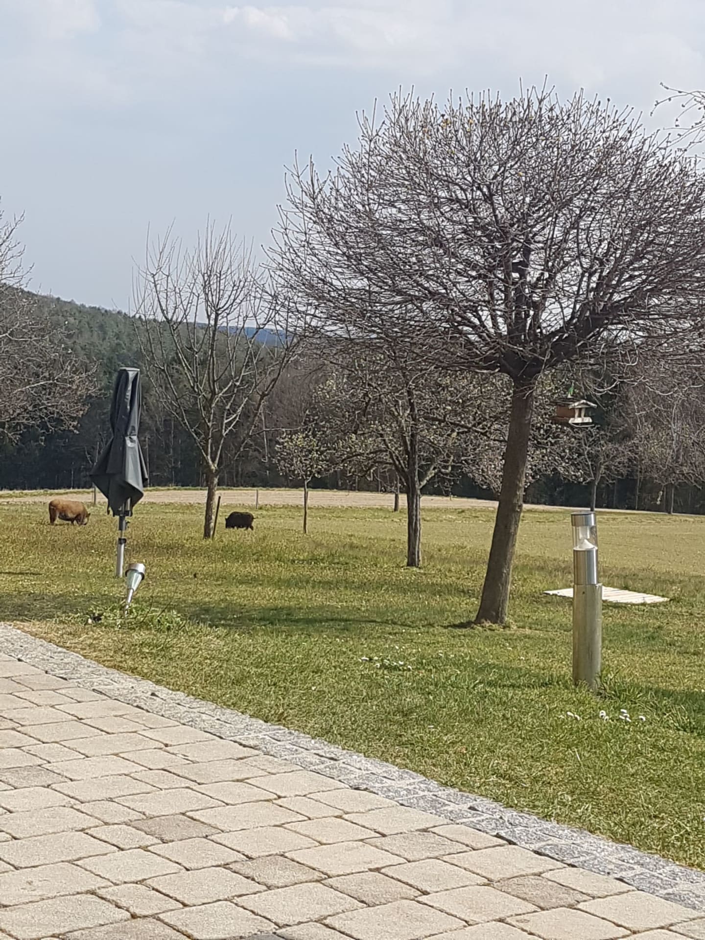 Der Lieblingsplatz der Familie ist unterm Hirschbirnbaum, wo wir oft das bunte Treiben der Heißluftballone beobachten.