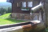 • Sitzgarnitur, Griller und Brunnen vor der Hütte