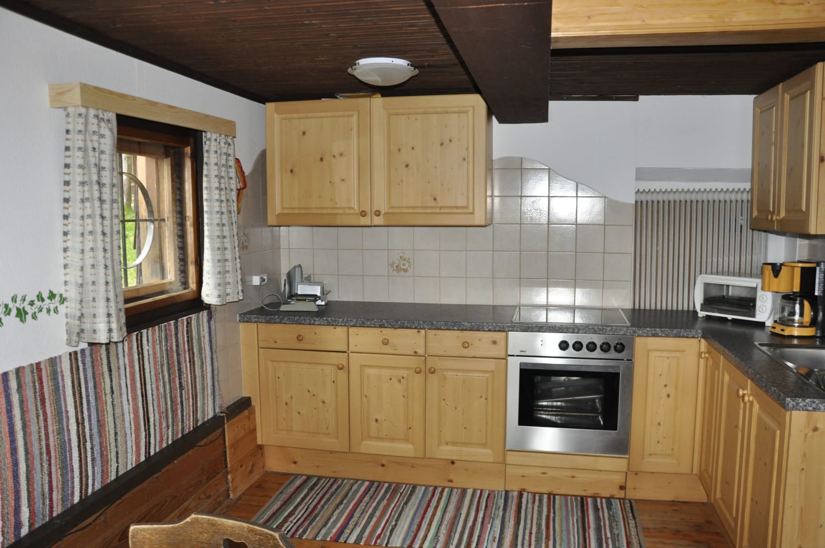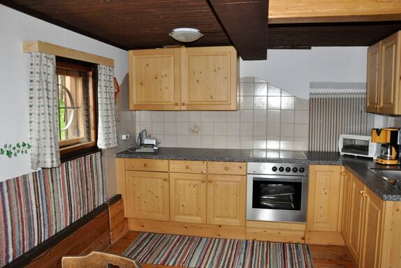 • Küche mit sämtlichen Küchenutensilien, Geschirrspüler und Almhüttengeselligkeit