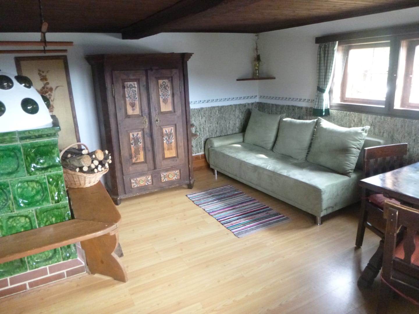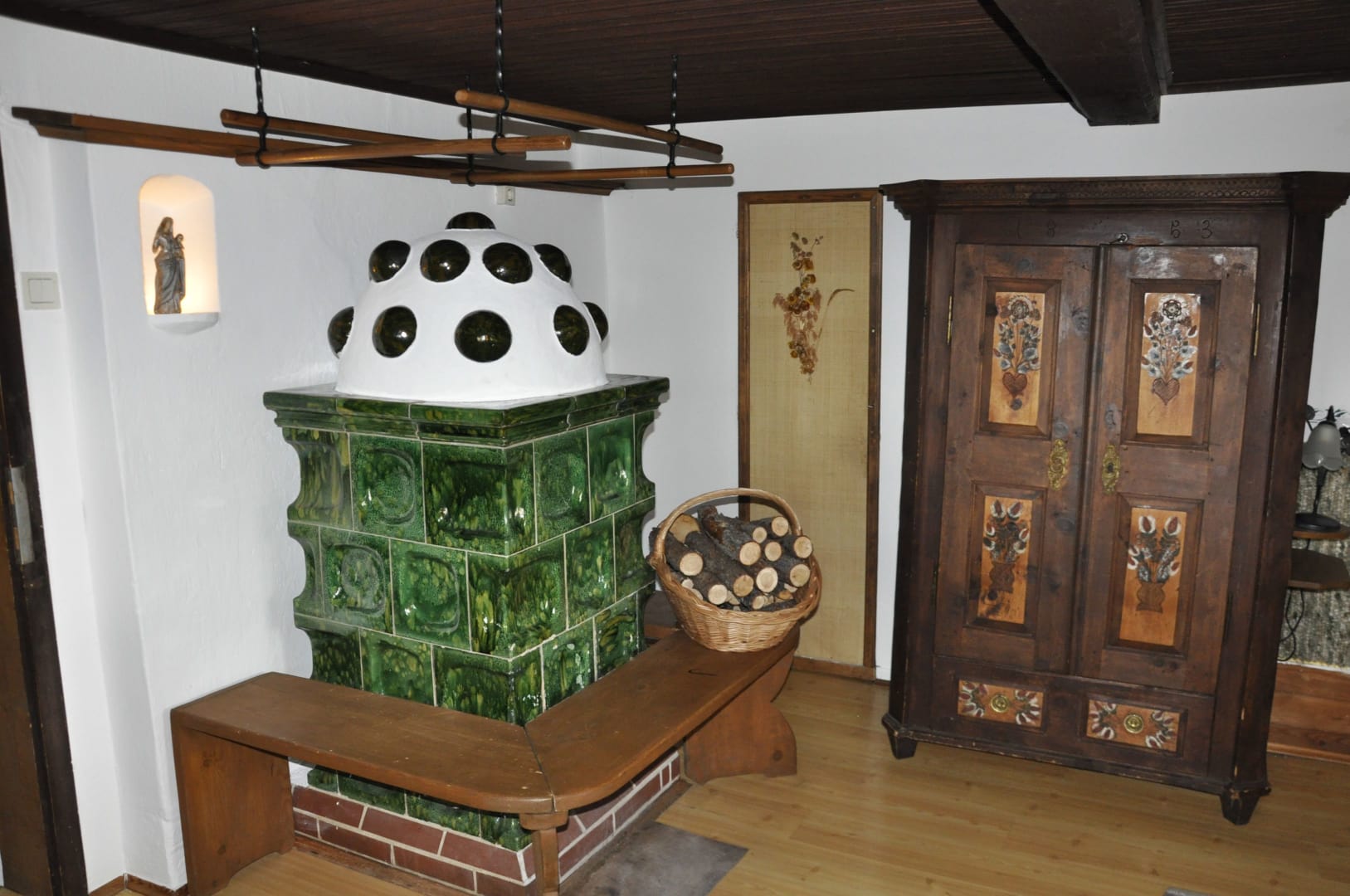 • Gemütliche Stube mit Kachelofen, ausziehbarer Couch und Flachbildfernseher