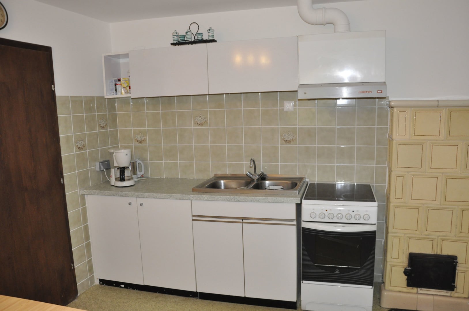 • Küche mit sämtlichen Küchenutensilien, Kühlschrank und Almhüttengeselligkeit