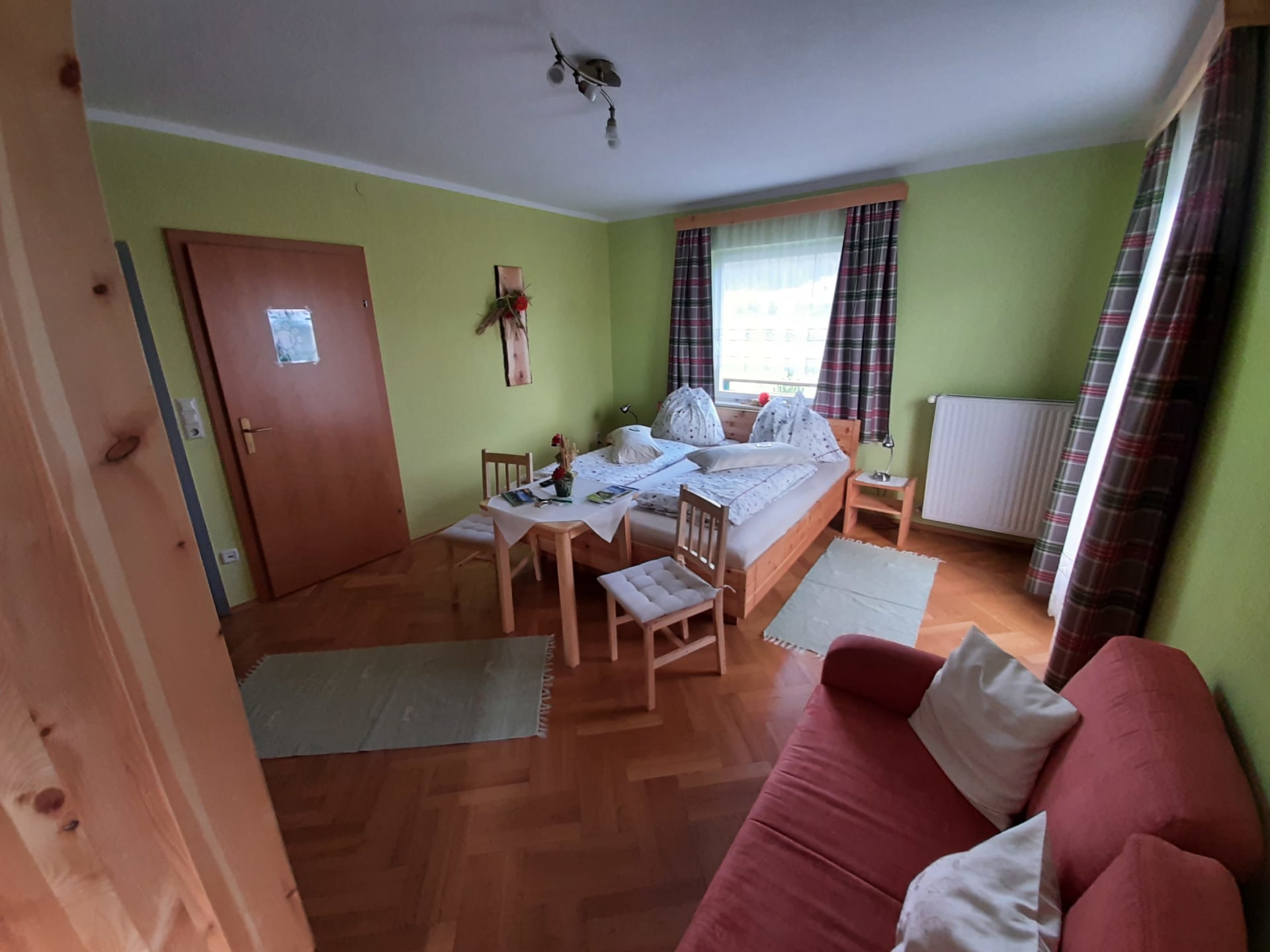 Freundlich ausgestattetes Zimmer mit Zirbenholzmöbel mit Balkon und herrlichem Blick auf St. Oswald und Umgebung. Dusche/WC getrennt, Sofa (ausziehbar), Kabel-TV, Radiowecker.Nichtraucherzimmer