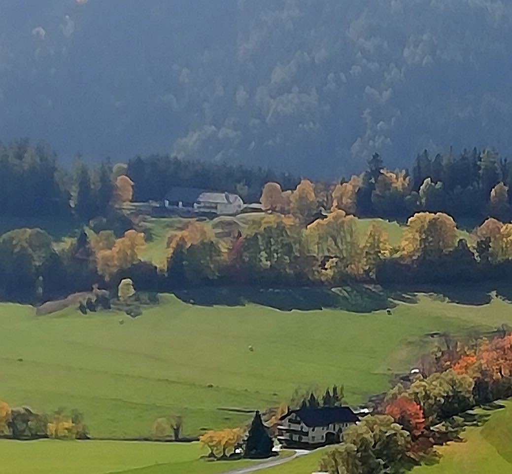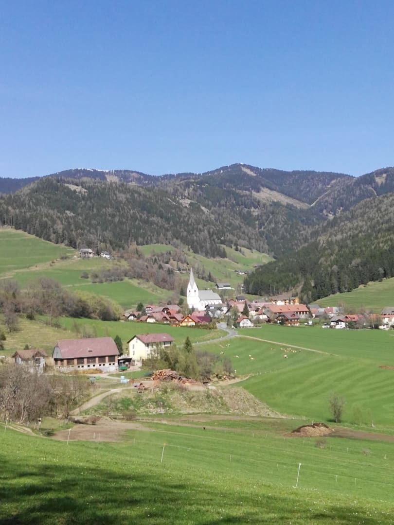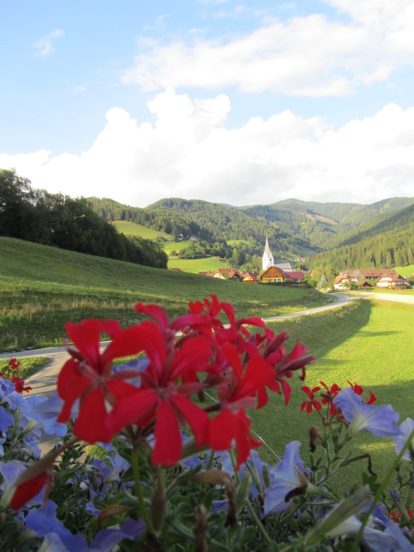 Von Ihrem privaten Balkon genießen Sie einen atemberaubenden Panoramablick auf das malerische St. Oswald und die umliegende idyllische Landschaft – der perfekte Ort für den Morgenkaffee oder einen entspannten Abend.
