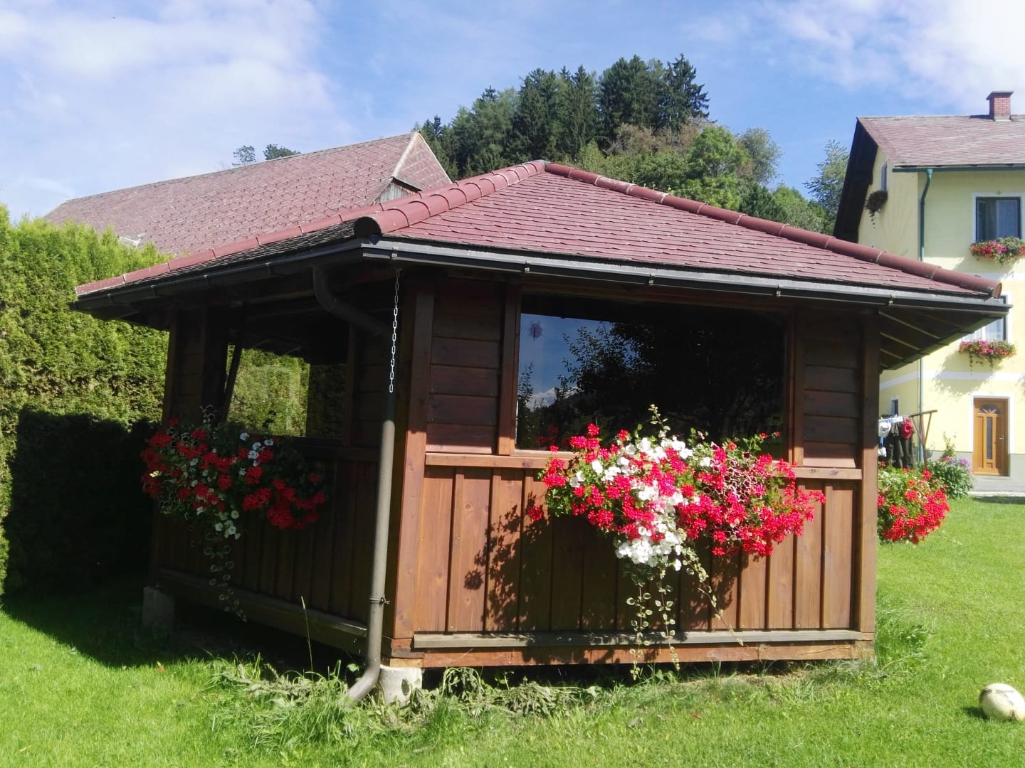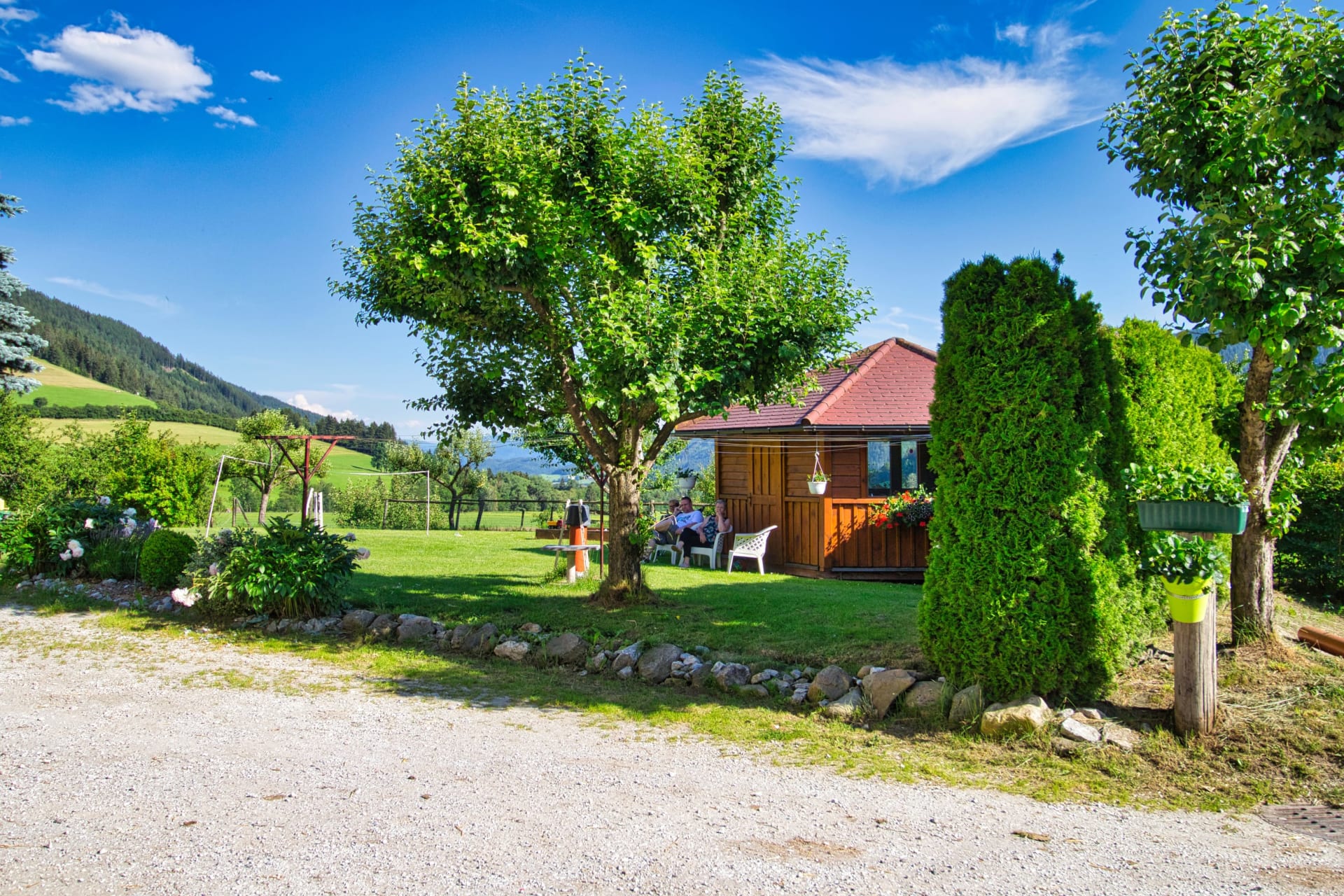 • Für einen gemütlichen Tagesausklang eignet sich unser großer Garten mit Spielplatz für die Kleinen und Gartenpavillon für die Großen.