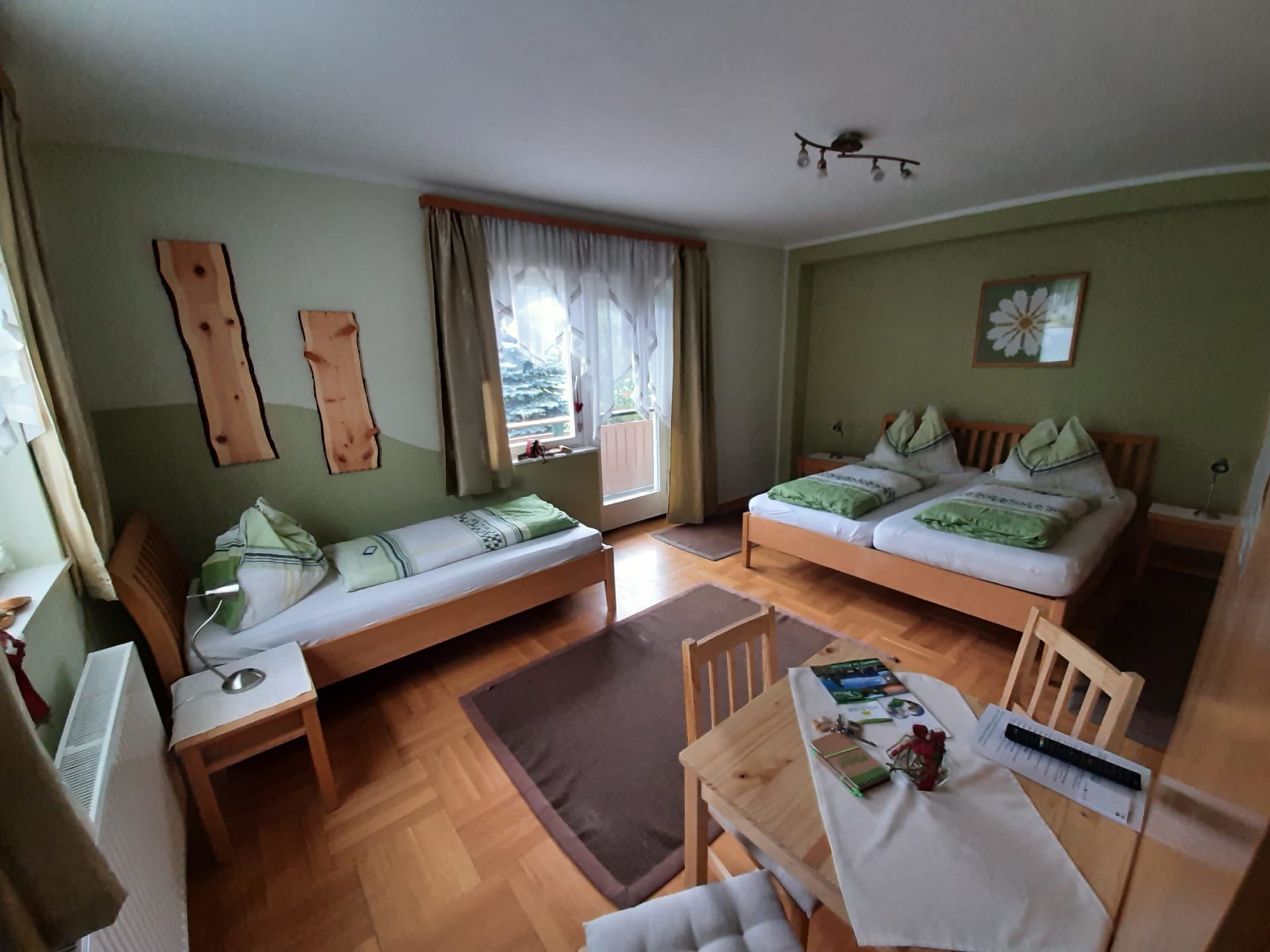 • Wir vermieten 2 Zweibettzimmer mit Balkon im OG und 1 Mehrbettzimmer mit Balkon im EG