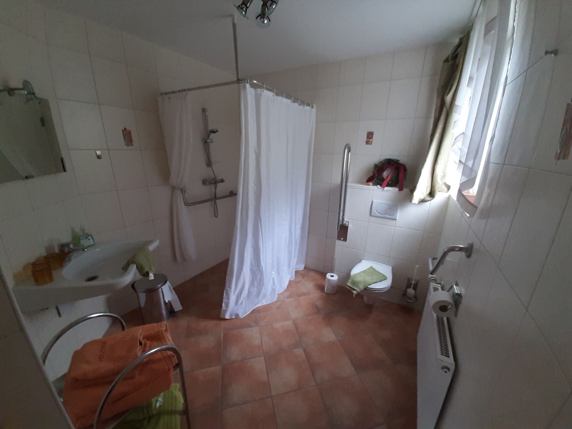 Das Zimmer ist vollständig auf Ihre Bedürfnisse abgestimmt, inklusive einer befahrbaren Dusche und einem barrierefreien WC.
