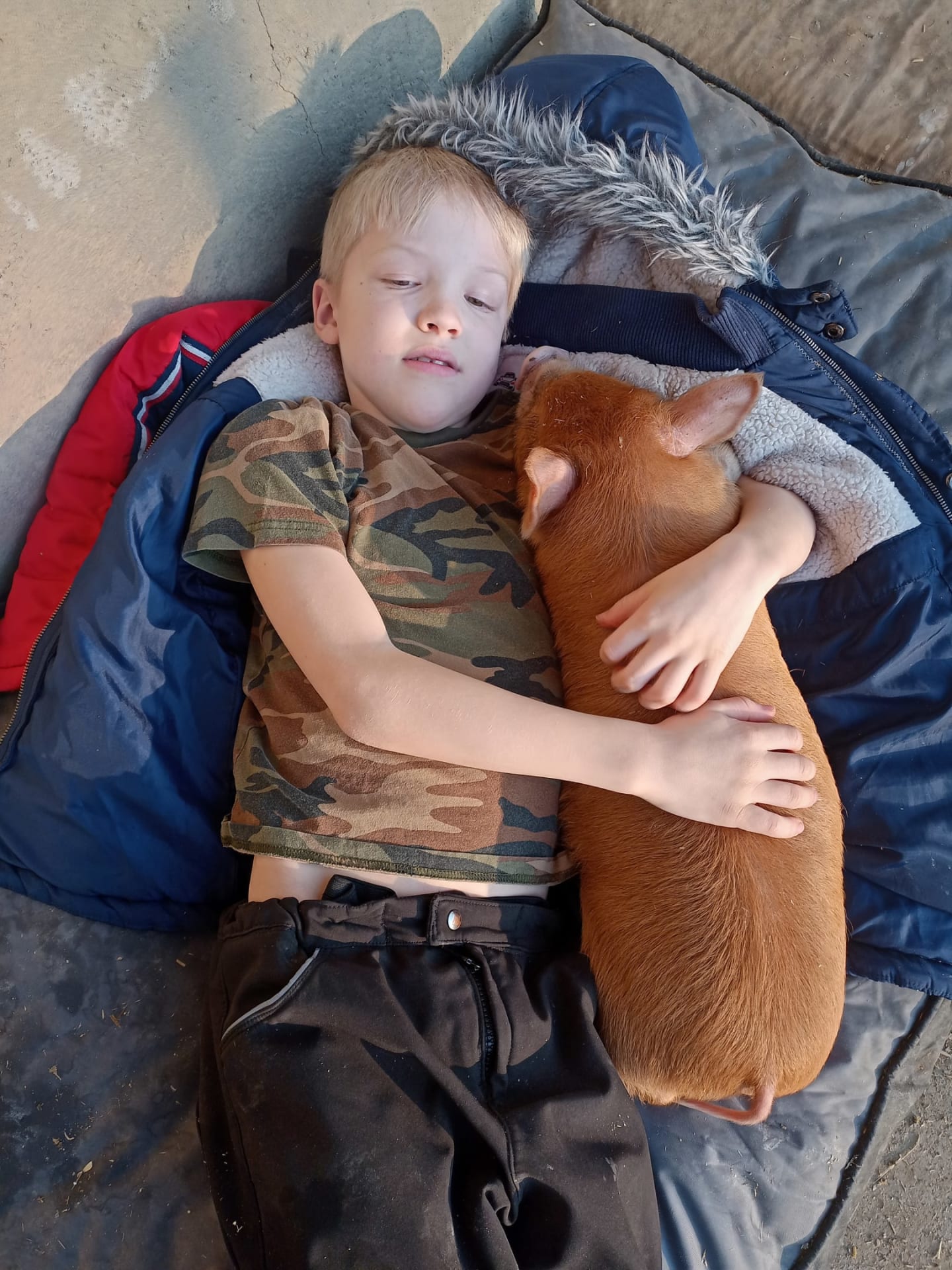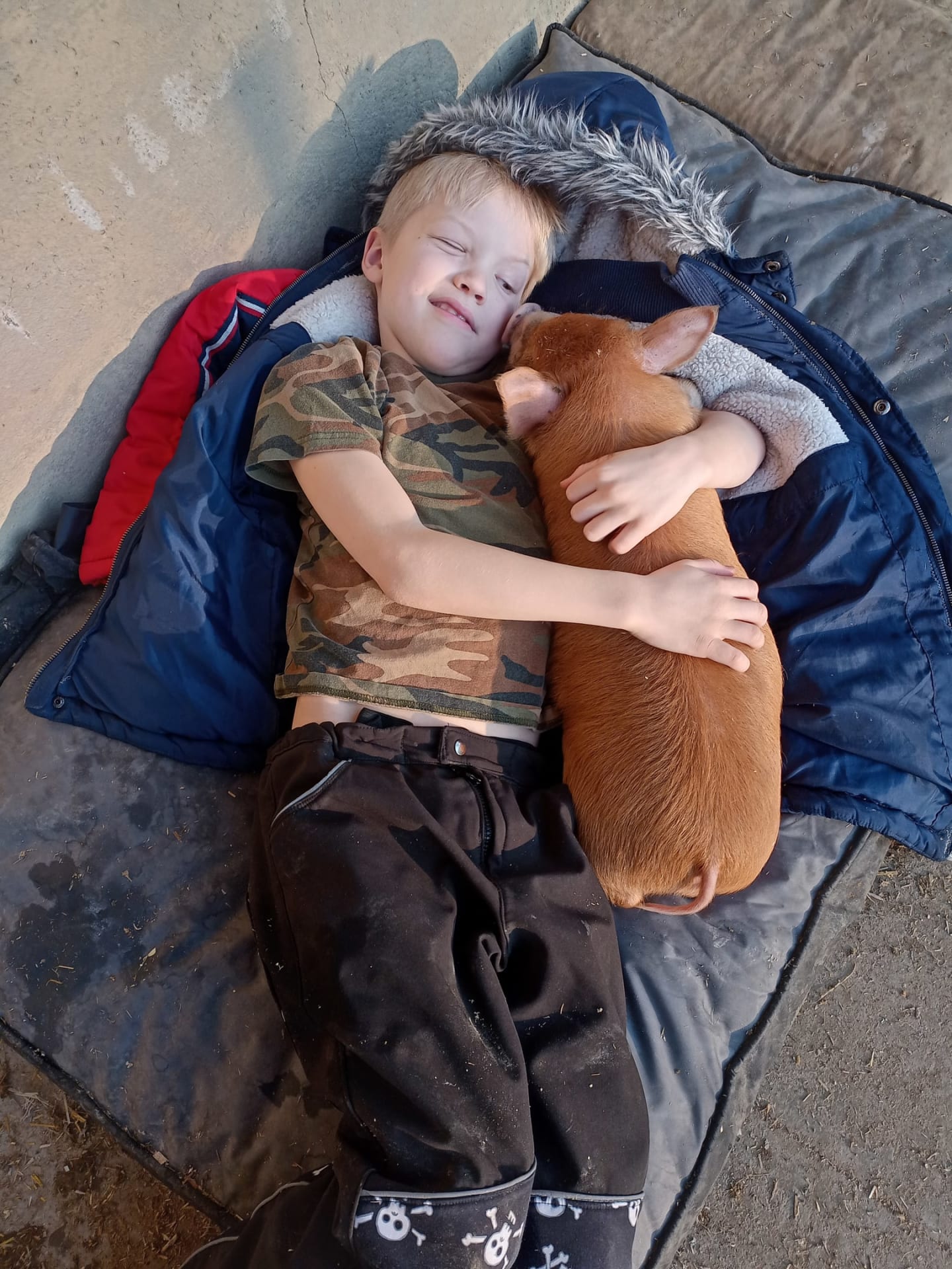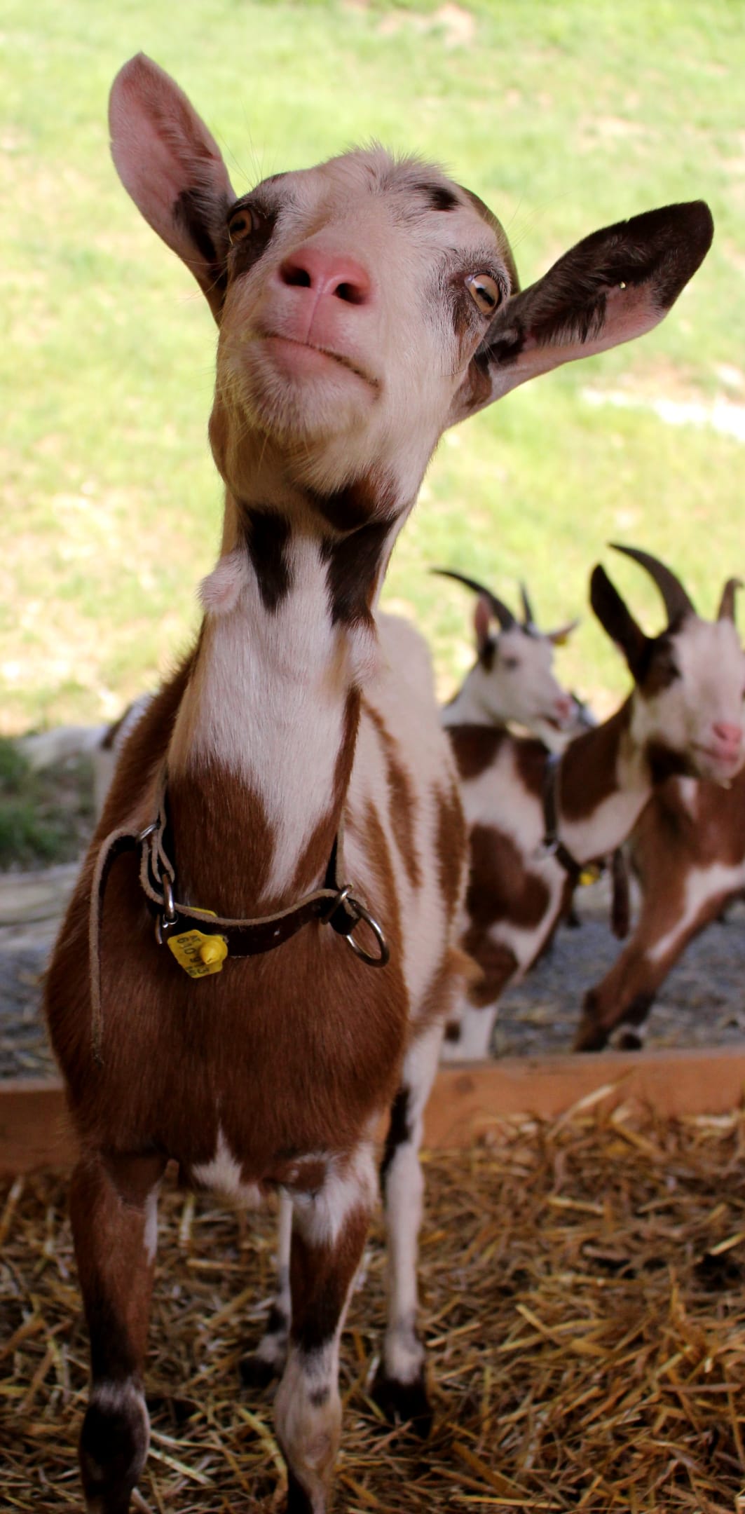 Es gibt viele verschiedene Tiere am Hof (Katzen, Hühner, Ziegen, Gänse, Truthähne, Kaninchen, Kune-Kune-Schweine und Ferkel) und eine tägliche Stallrunde.