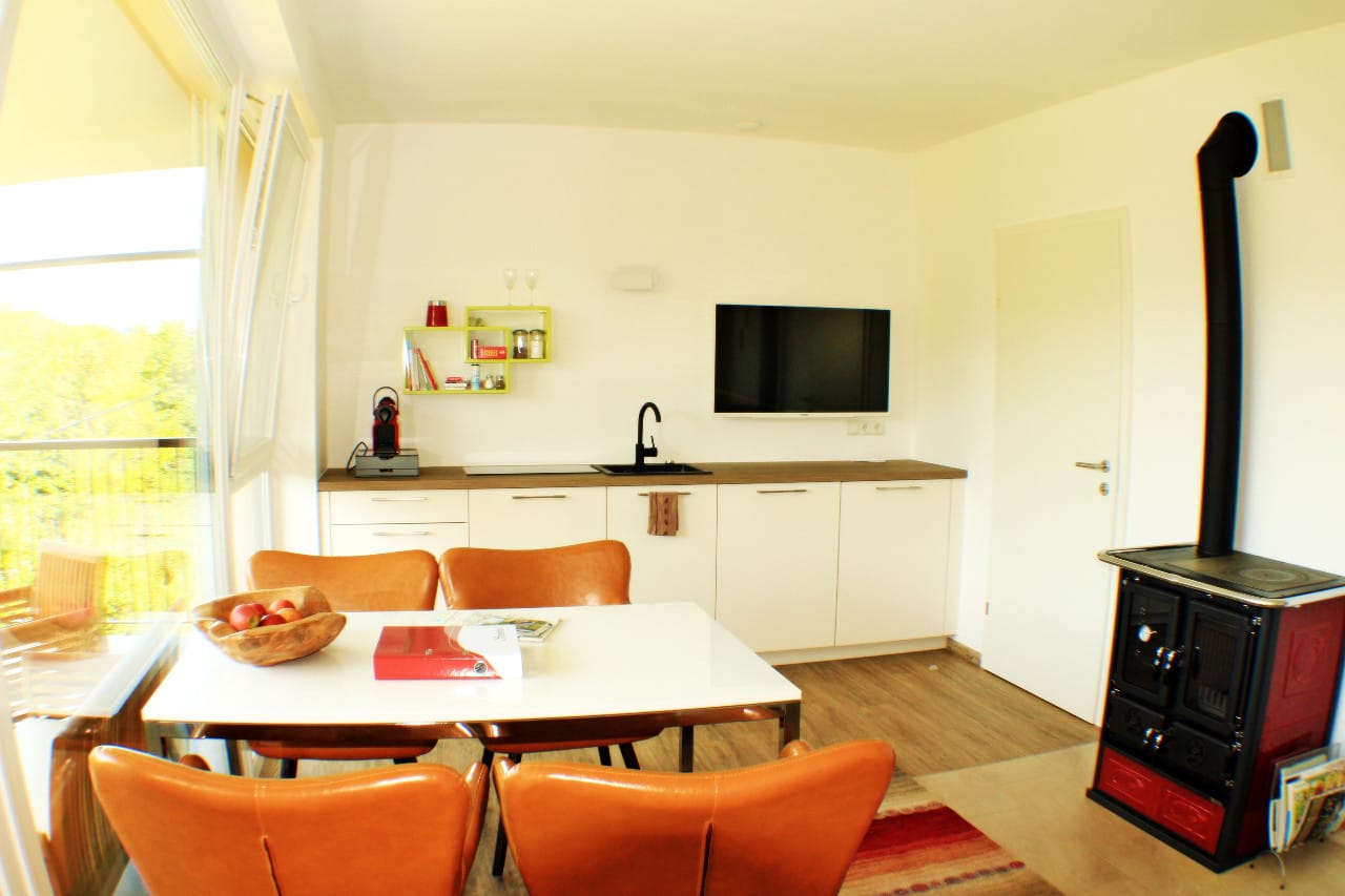 Jede Suite hat ein Bad, ein WC, eine Wohnküche und einen großen Balkon mit super Blick über die Landschaft. Die genaue Beschreibung finden Sie auch auf unserer Homepage