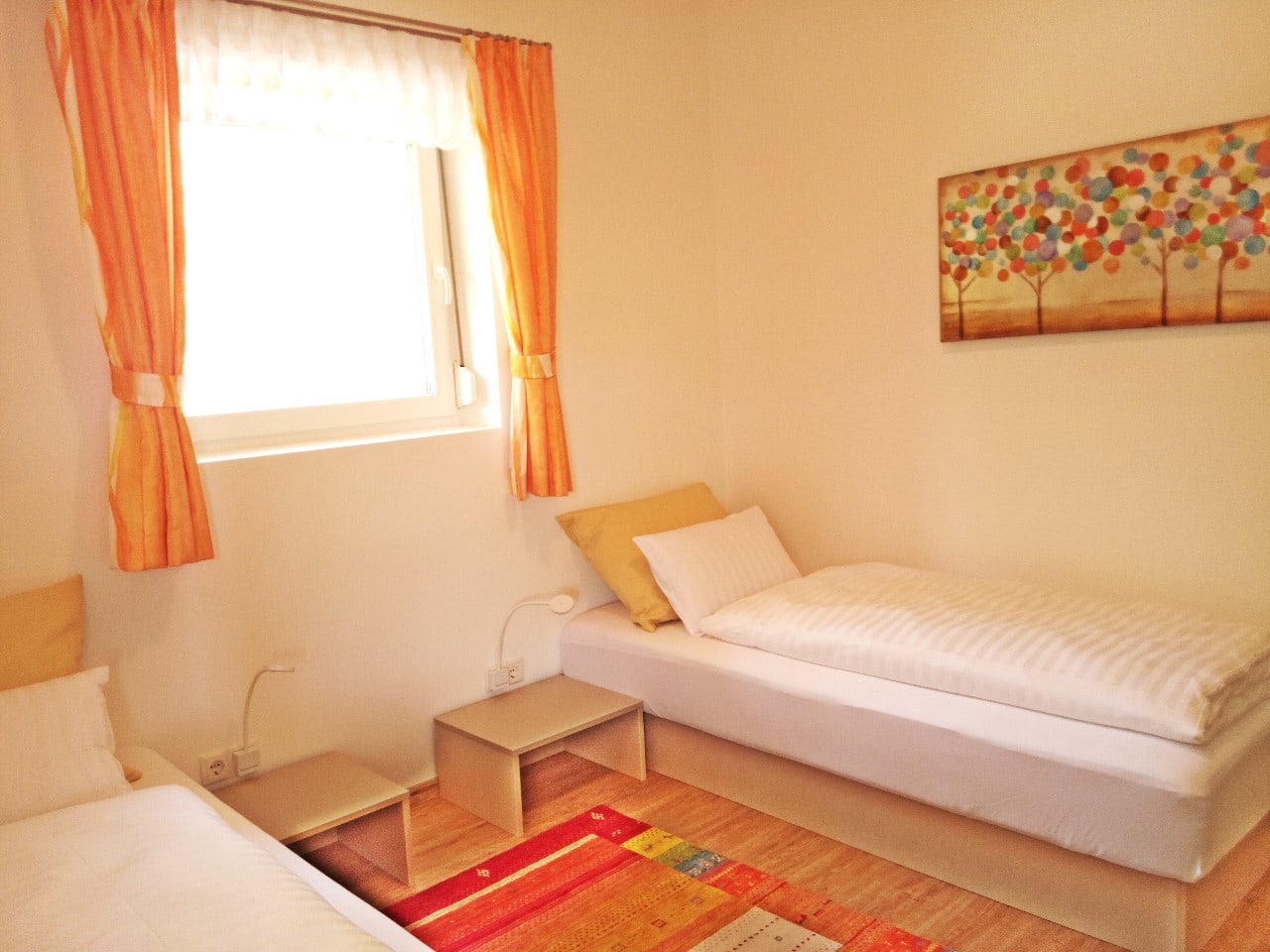 Unser Gästehaus verfügt über drei Suiten mit jeweils eigenem Eingang. Zwei Suiten haben je zwei Schlafzimmer (eines mit Doppelbett und eines mit zwei Einzelbetten, die zu einem Doppelbett zusammengestellt werden können) und eine Suite hat nur ein Schlafzimmer (Doppelbett mit durchgehender Matratze).
