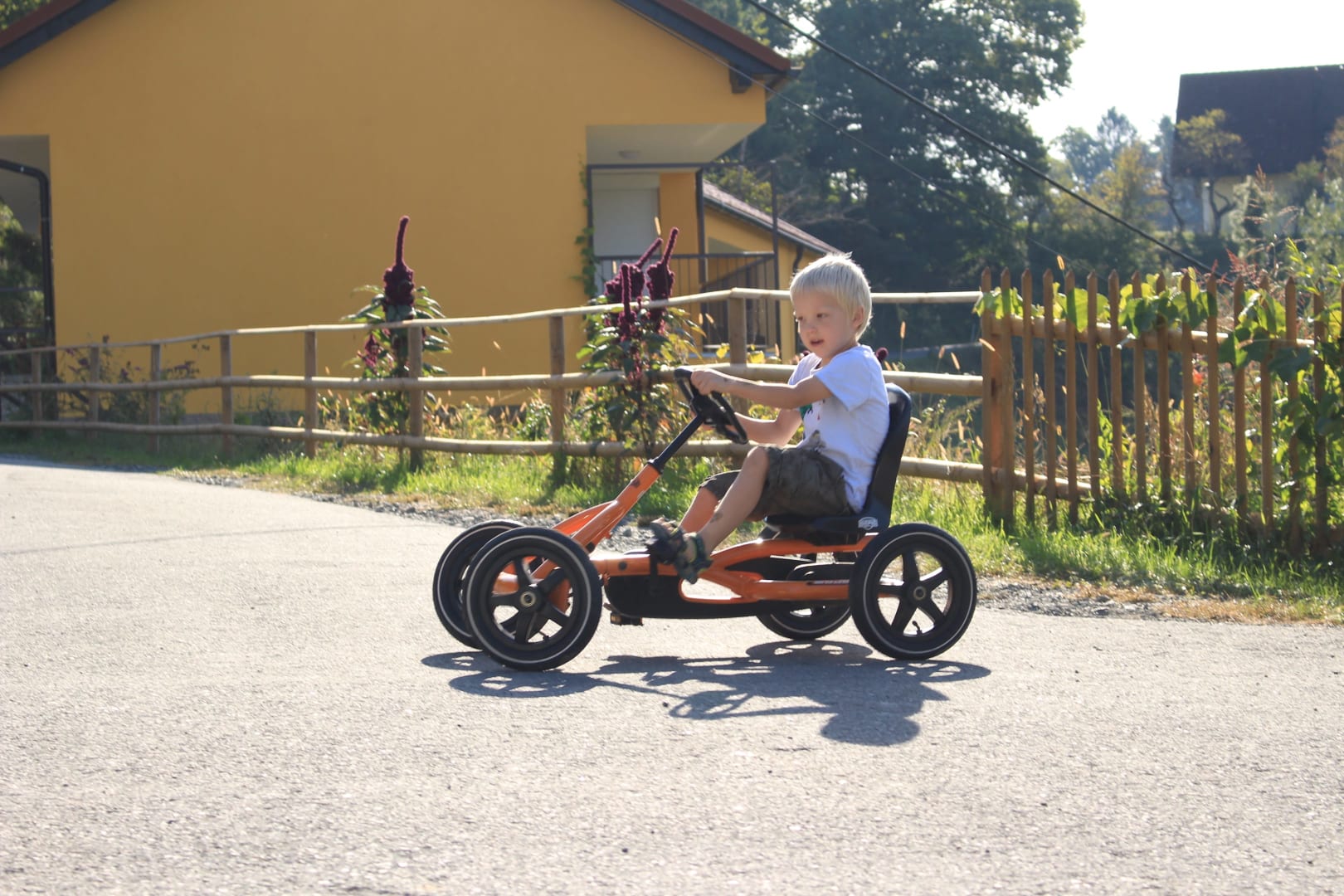 Für alle Kinder gibt es Fahrzeuge: Bobbycar, Dreirad, Laufrad, Traktor, Tretauto, Slide-Trike, Fahrrad... Unsere Hofzufahrt ist Privatstraße ohne Autoverkehr.