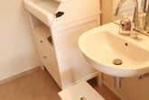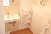 Bad und WC sind getrennt. Im Bad gibt es einen Wickeltisch und das WC hat eine integrierte Kinderklobrille.