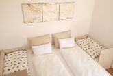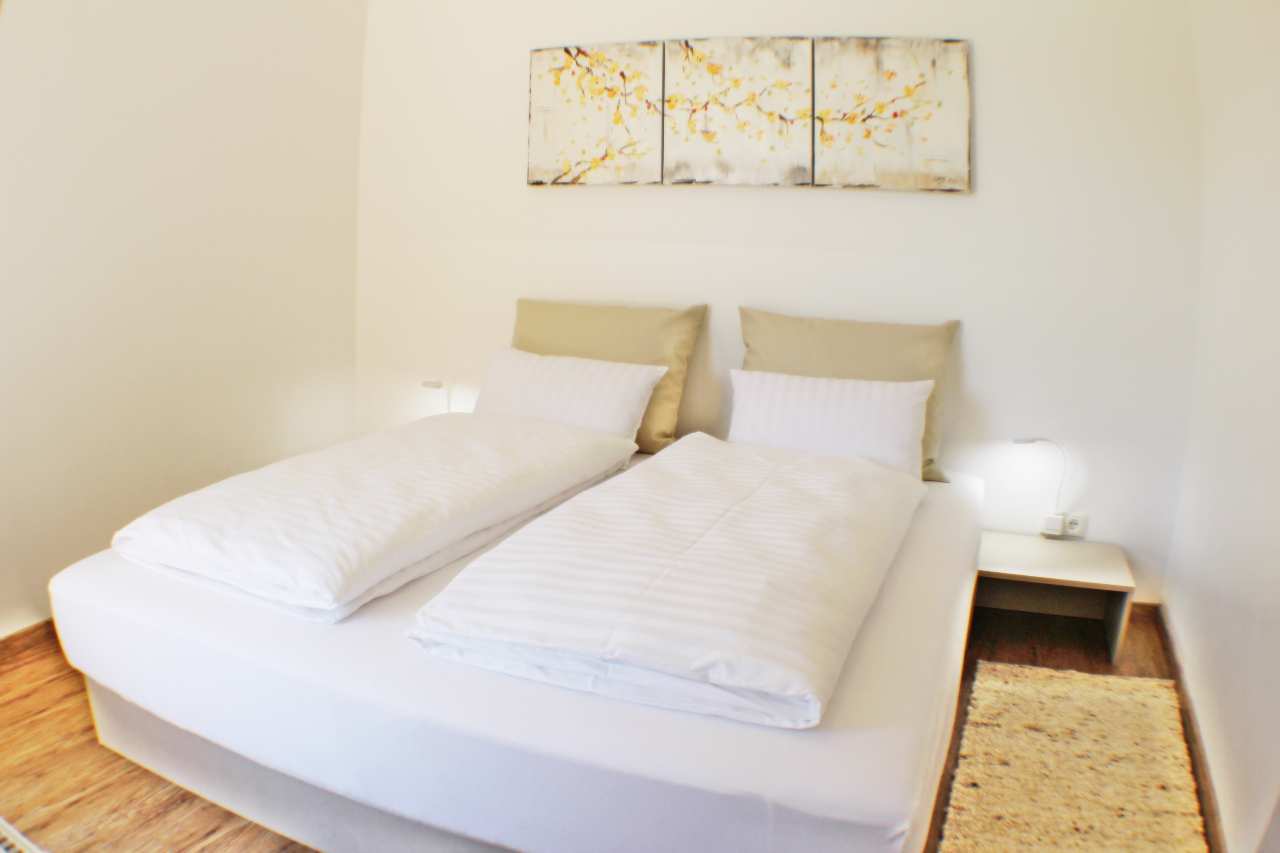 Die Suite hat ein separates Schlafzimmer mit einem großen Doppelbett. An dieses können bis zu zwei Beistellbetten für Kleinkinder (bis 5 Jahre) angebaut werden - das ergibt ein super kuscheliges Familienbett.