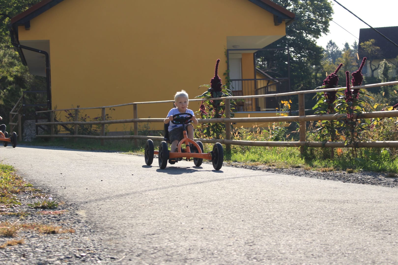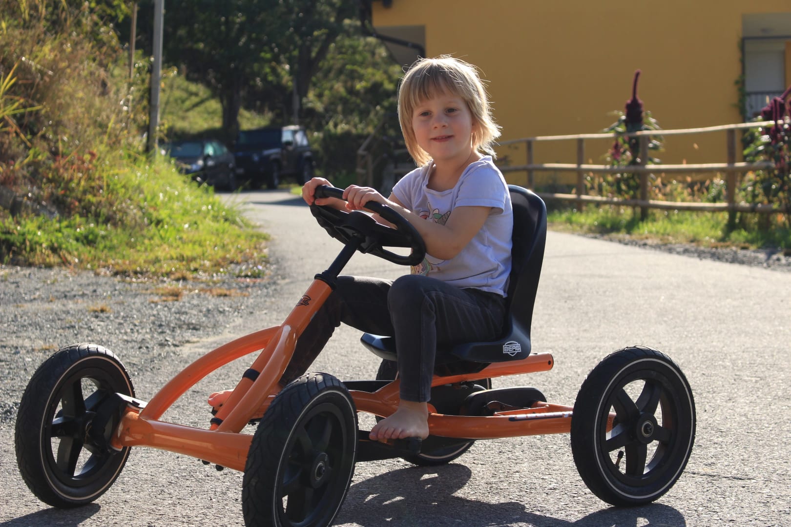 Für alle Kinder gibt es Fahrzeuge: Bobbycar, Dreirad, Laufrad, Traktor, Tretauto, Slide-Trike, Fahrrad... Unsere Hofzufahrt ist Privatstraße ohne Autoverkehr.