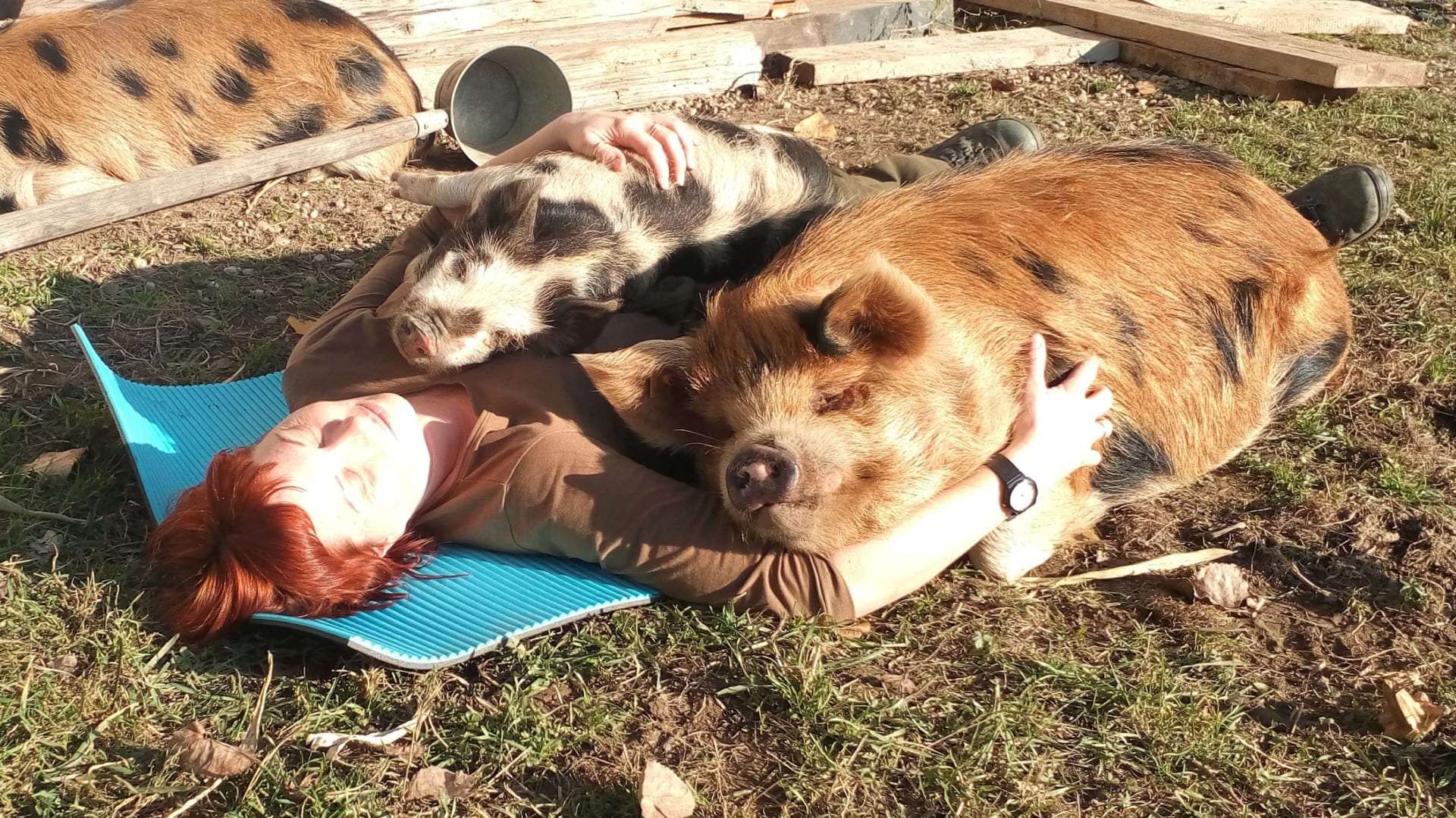Es gibt viele verschiedene Tiere am Hof (Katzen, Hühner, Ziegen, Gänse, Truthähne, Kaninchen, Kune-Kune-Schweine und Ferkel) und eine tägliche Stallrunde.