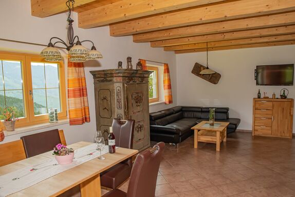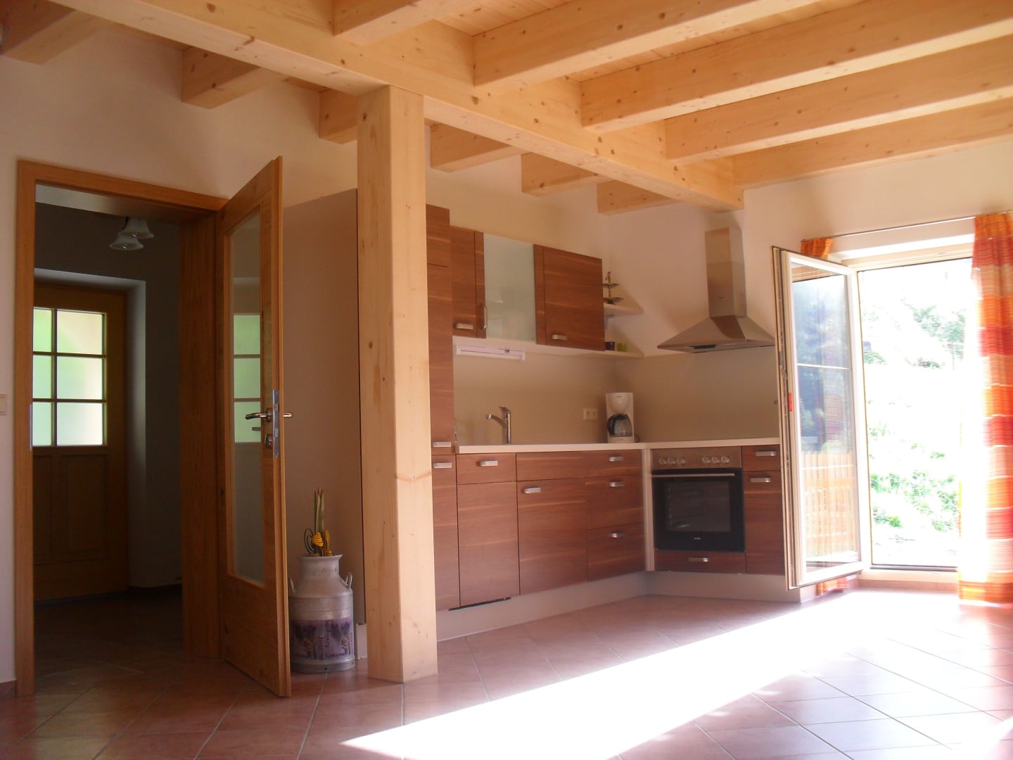 In unserem ca.80m2 großen Bio-Ferienhaus (Nichtraucher) erwartet Sie: Großzügige Wohnküche mit ca.200 Jahre alten Bauernkasten, Eßtisch, Caoch und Flachbildfernseher.Die Küche ist komplett ausgestattet: Geschirrspüler, Backrohr, Ceranfeld, Kühlschrank mit Gefrierfach, Wasserkocher, Kaffeemaschine, Geschirr, Gläser, Besteck und Kochtöpfe.