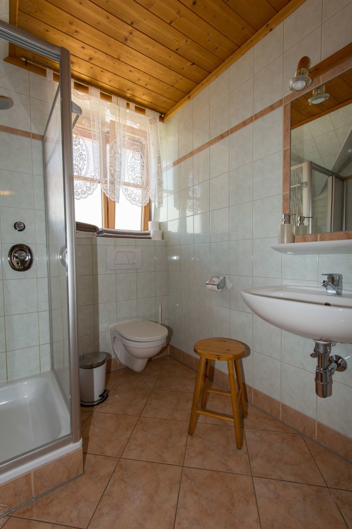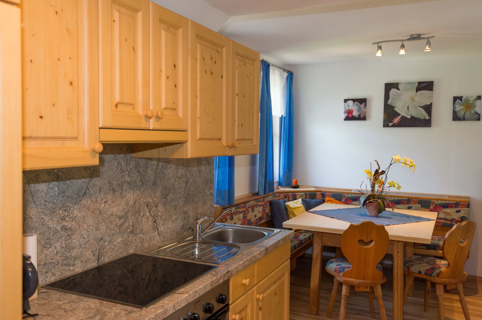 Genießen Sie den Ausblick auf das Ennstal und in die herrlichen Berge, unsere Ferienwohnung hat 42m² mit 2 getrennten Schlafzimmern, Wohnküche, Bad und WC. Die Ferienwohnung wurde mit viel Liebe und selbst getischlerten Möbeln eingerichtet.