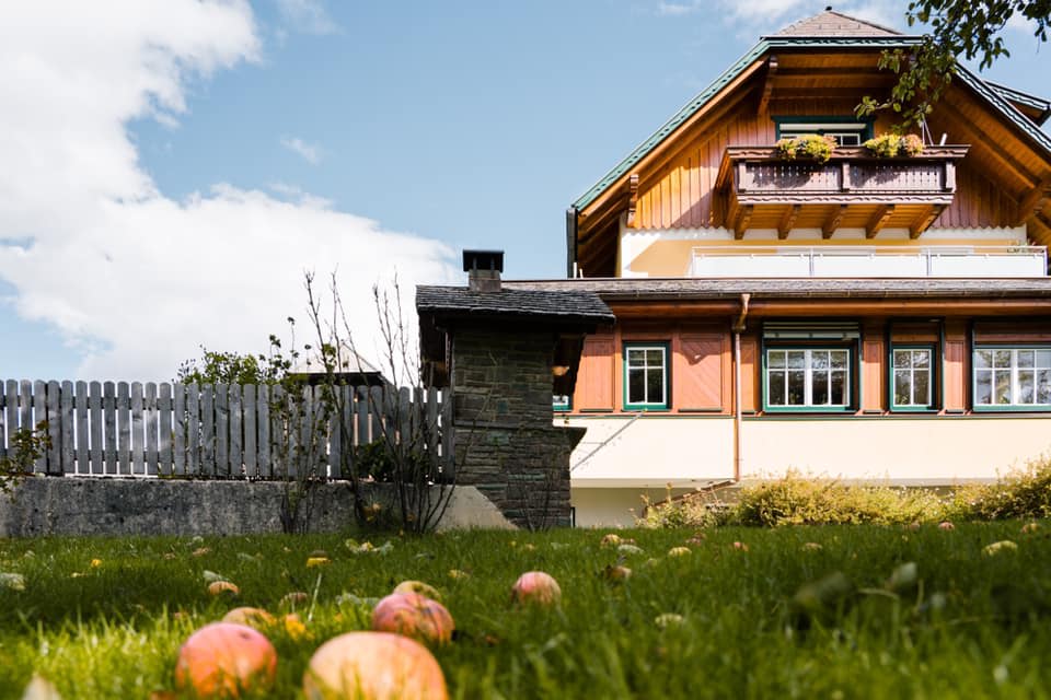 Kinder aufgepasst! Vergnügt euch draußen am Hof im Schnee, baut Schneemänner im Garten und rodelt die Wiese um die Wette herunter, während die Erwachsenen noch den letzten Schluck Kaffee im Wintergarten trinken.