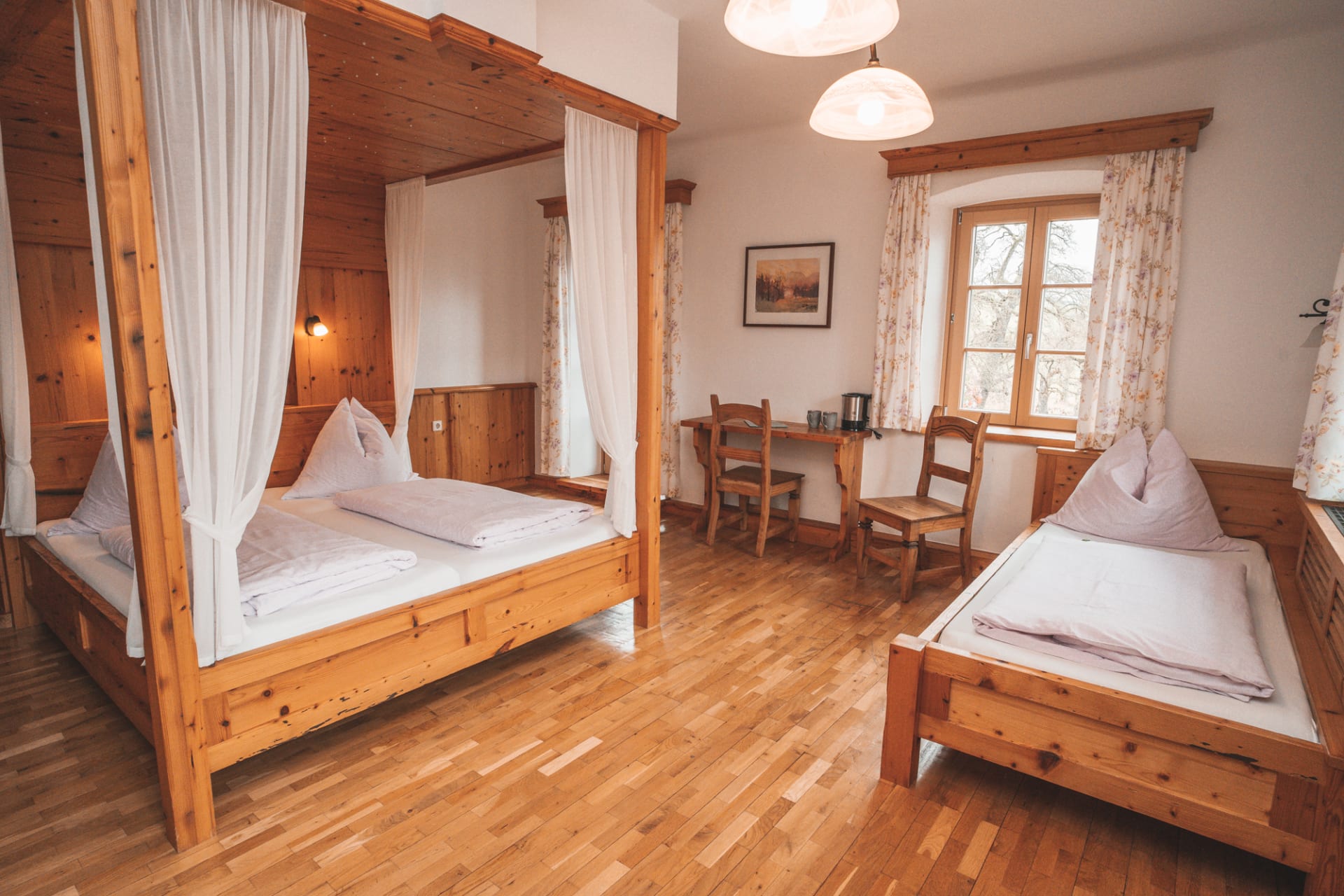 Das beste Zimmer am Hof ist früher stets den alten Bauersleuten zugestanden - so auch am Schwoagahof. Großmami und Großtati hatten ein wunderbar großes und helles Zimmer mit traumhaften Blick über das Tal, auf den Grimming aber zugleich auch auf den Hof.