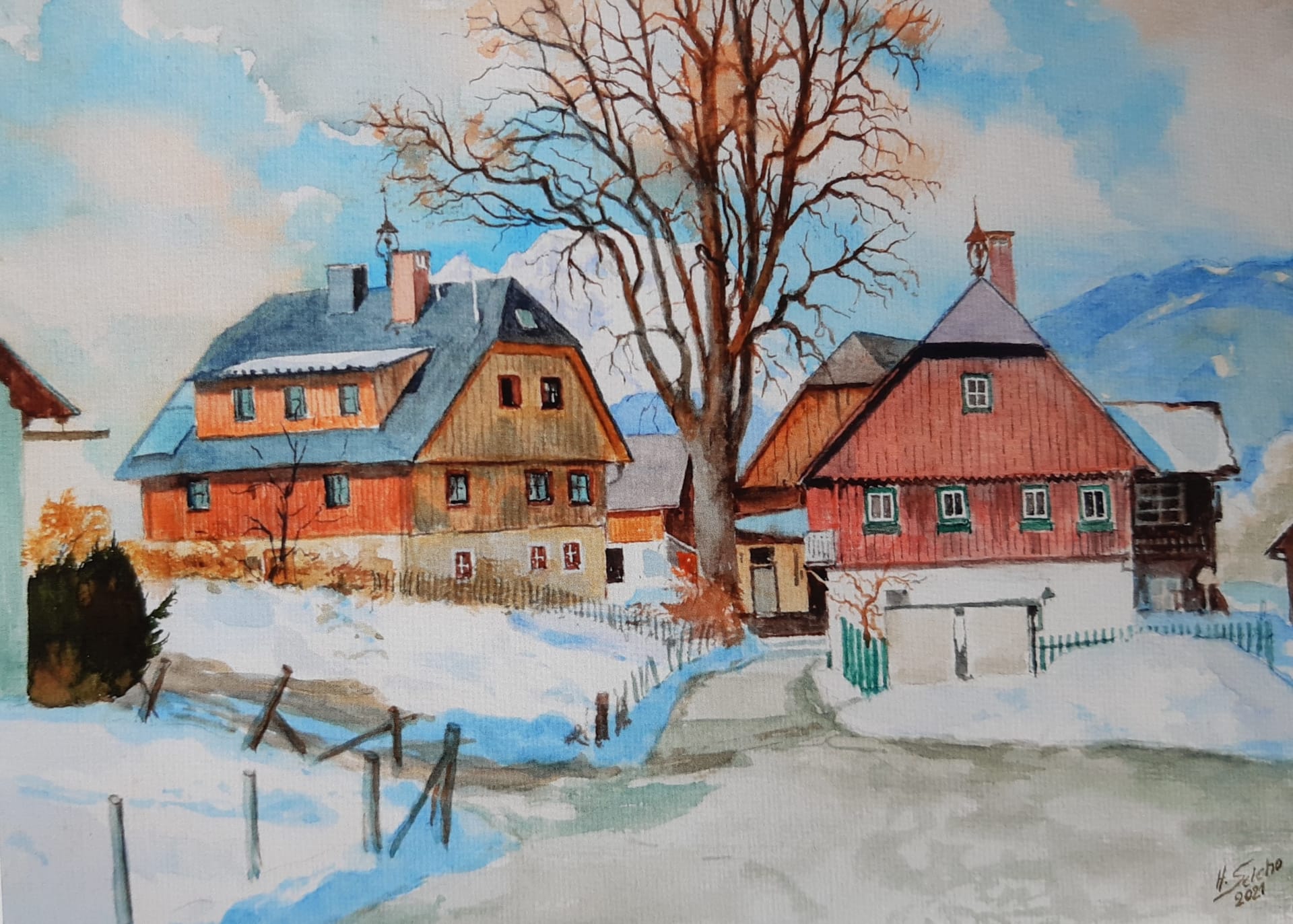 Rodeln oder Bobfahren hinterm Haus bei ausreichender Schneelage,
