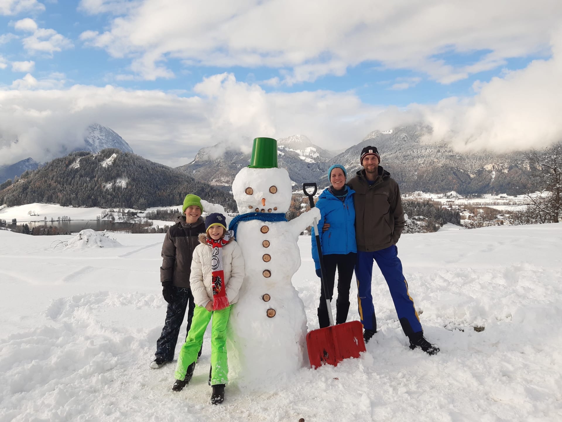 Genießen Sie den Wintersonnenschein auf unserem Bauernhof bei Iglubauen, Schneeballschlacht, Schneemannbauen und Rodeln.
