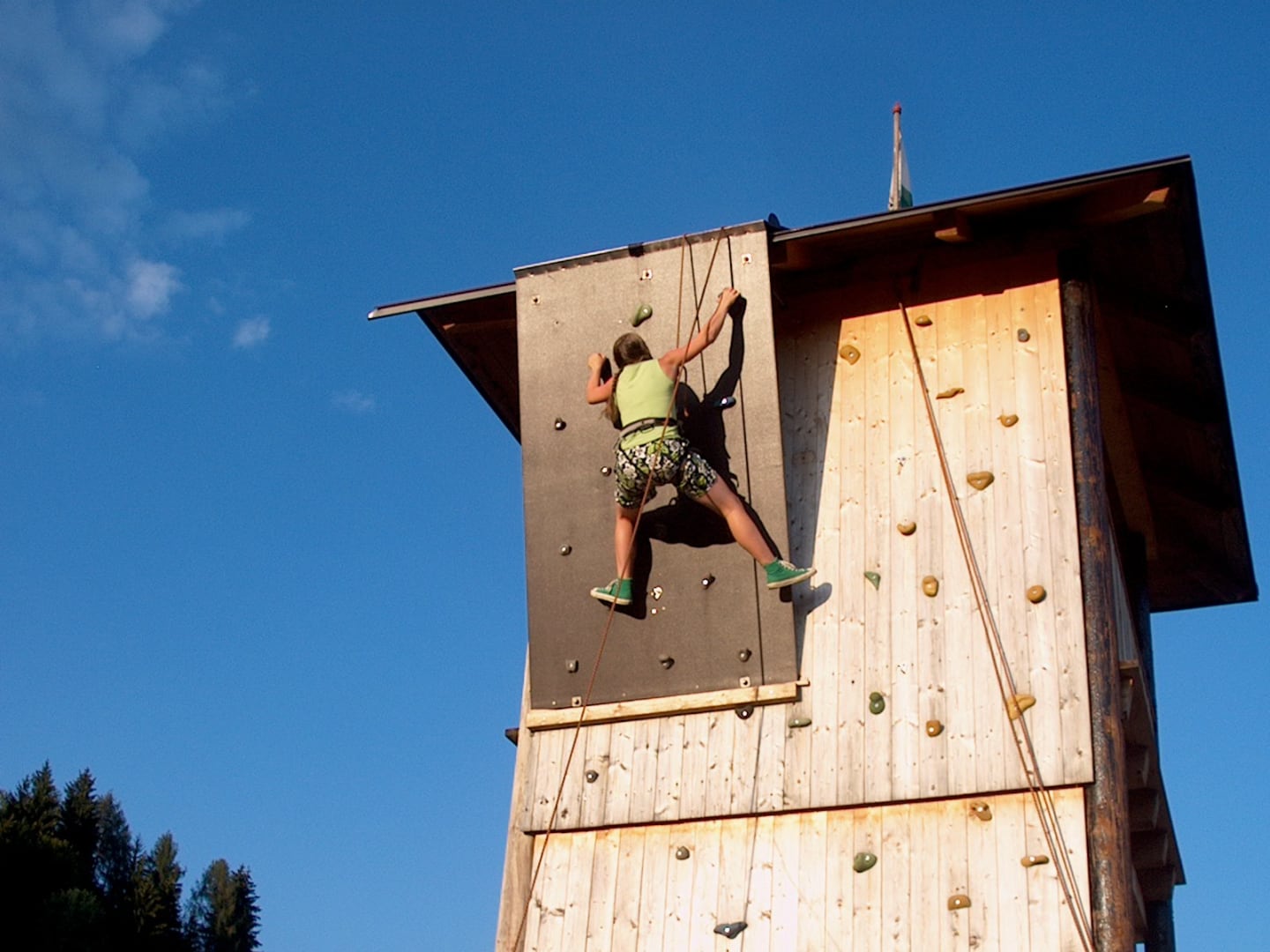 Appartement Remise im Abenteuerhaus, ca. 78m² für 5-6 Personen; Diele, Dusche, WC, 1 Schlafzimmer mit Doppelbett und Couch, darüber das Zimmer Baumhaus (165cm Raumhöhe) mit 3 Betten. Die Wohnküche hat ost- und südseitig eine Terrasse, 4-Plattenherd mit Backrohr, Geschirrspüler, Kühlschrank mit Gefrierteil, Kaffeemaschine und Wasserkocher, Sofa, Kabel-TV und Wlan.