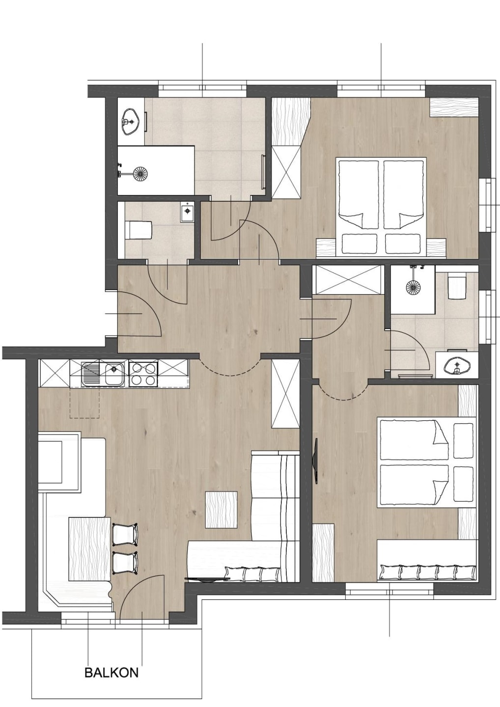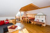 Die neu erbauten Appartements bestehen aus zwei Schlafräume, zwei Bäder, zwei Toiletten und einer großzügigen Wohnküche mit Kachelofen. Die Möbel sind  aus hellen Birken-Vollholz, die Böden aus geölten Eichenholz, allergikergerecht. Die Küche ist modernst ausgestattet mit Geschirrspüler, Mikrowelle, E-Herd mit Backrohr... Großzügiger Balkon mit traumhaften Ausblick und kostenloser W-Lan Zugang.