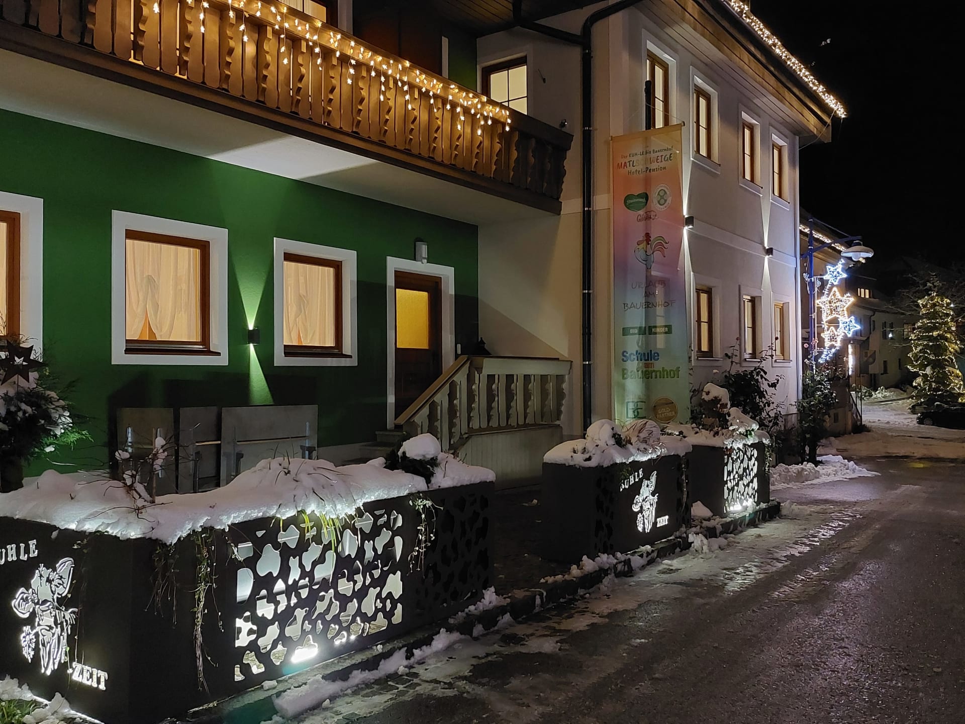 Während die Kinder bei den täglichen KUH-len Programmen wie Stallgehen mit Tiere versorgen, Kühe melken, Lebkuchen backen, Traktorfahren, Quad fahren, Tischlerwerkstatt, oder auf der täglich beleuchtete Piste mit den Rodeln eifrig dabei sind, können sich die Eltern auf unseren Verweil- und Ruheplätzchen so richtig entspannen- Möglichkeiten gibt es zur Genüge – aber man kann sich auch -für sich ganz Alleine- in unsere kleine private Wellnessoase mit finnischer Sauna, Dampfbad und Infrarot zurückziehen
