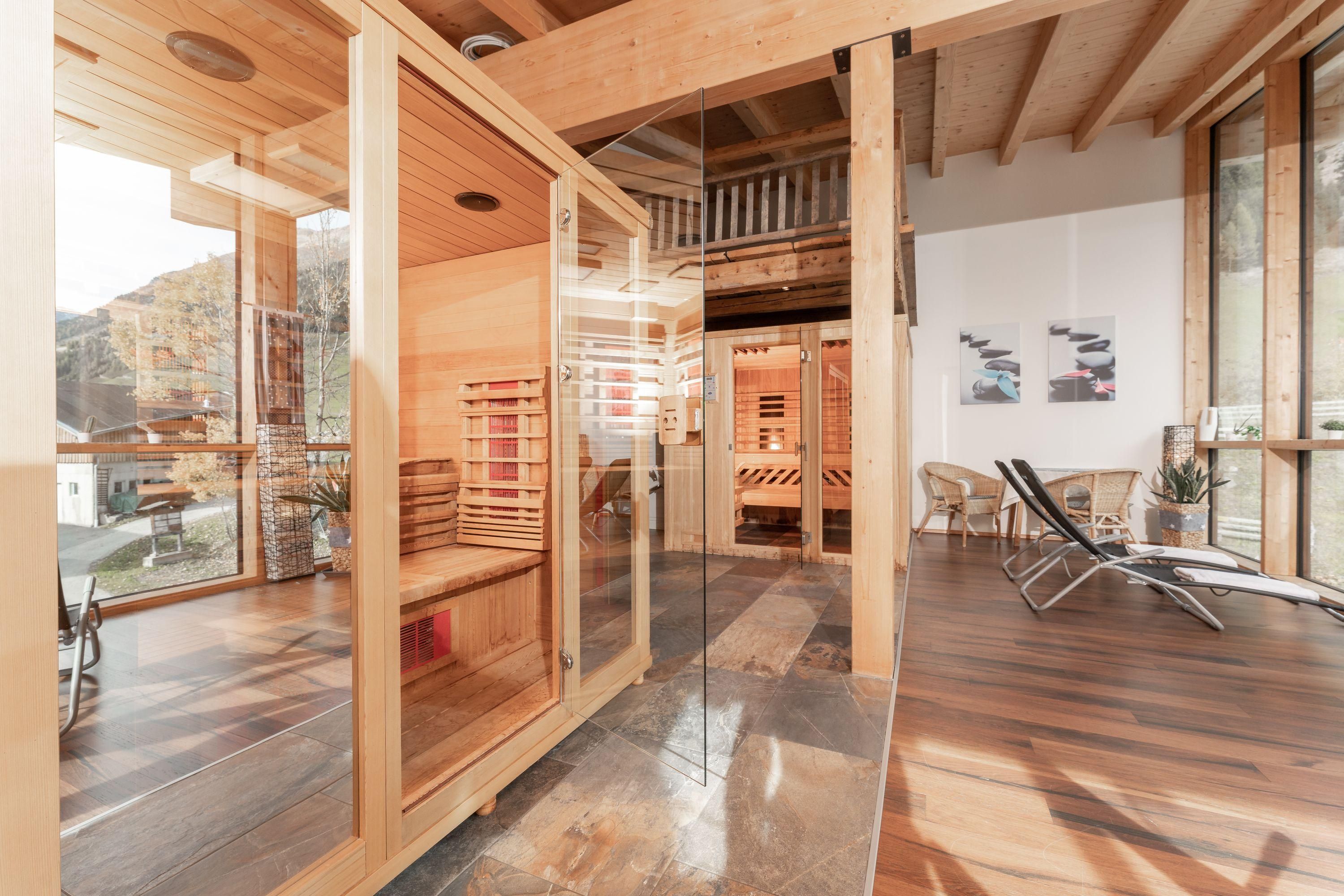 Genießen Sie erholsame Stunden in unserer Sauna oder der Infrarotkabine nach einem aufregenden Tag in den Alpen. Starten Sie den Tag mit einem köstlichen Frühstück, bevor Sie sich auf eine Schneeschuhwanderung oder eine geführte Wanderung begeben, direkt von unserem Haus aus. Das Aparthotel liegt ideal, direkt an den Ski- und Wanderwegen sowie an der Bushaltestelle, was Ihnen maximale Flexibilität bietet.