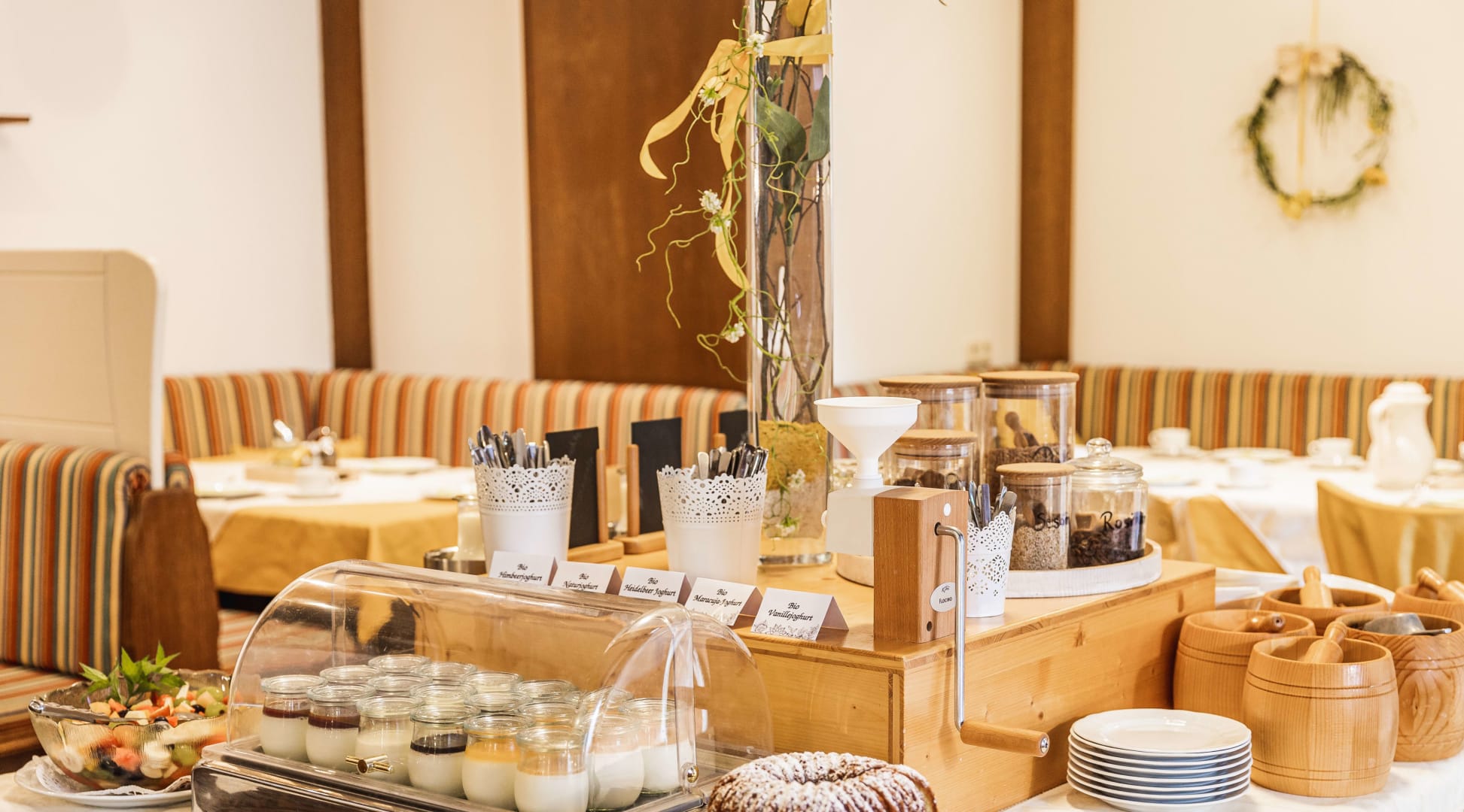 Wir bieten für alle Zimmer und Appartements ein Bio Frühstücksbuffet und dazu unsere Verwöhn-Halbpension mit vielen Produkten von der eigenen Landwirtschaft und verzaubern Sie auch kulinarisch.