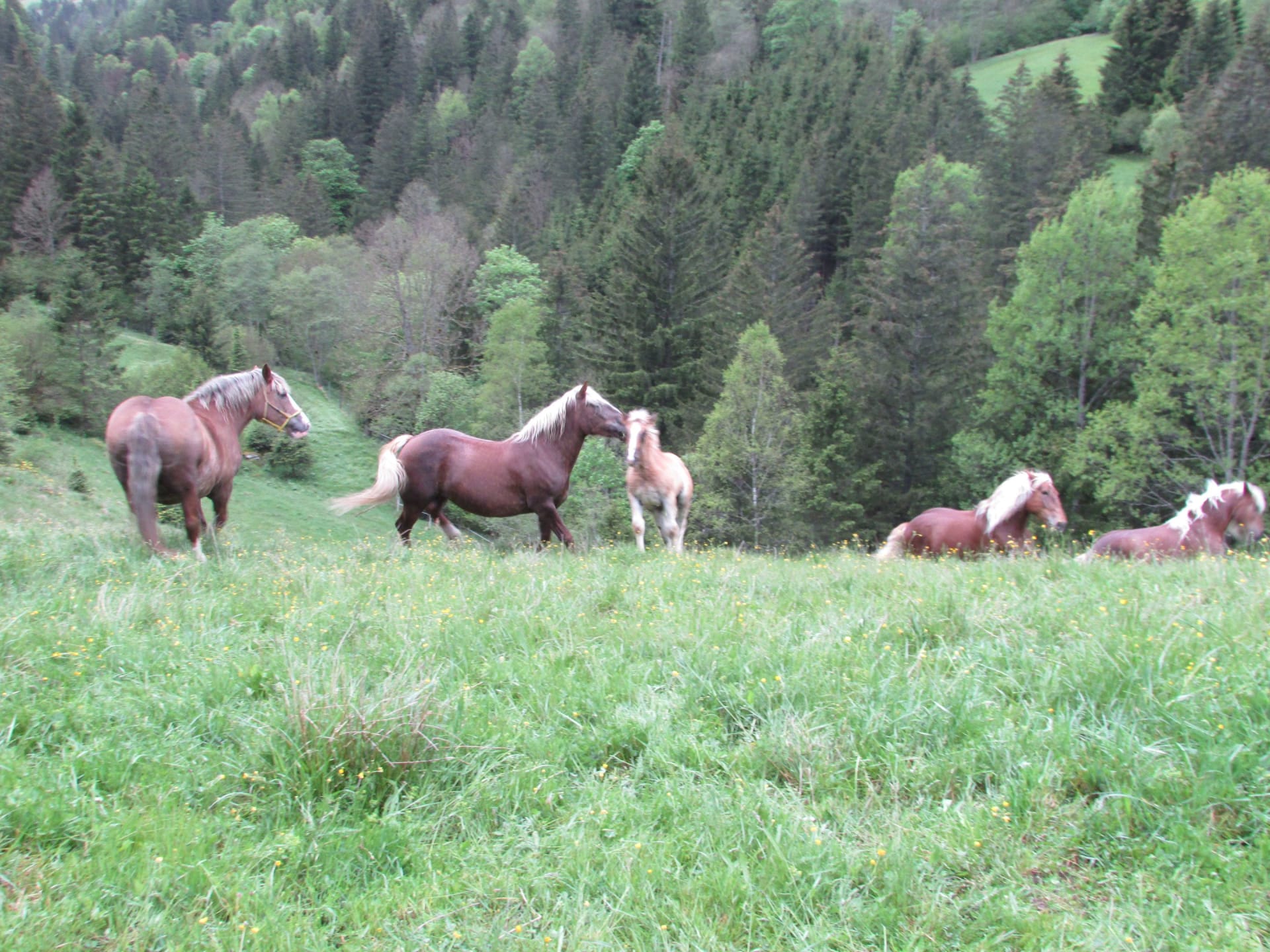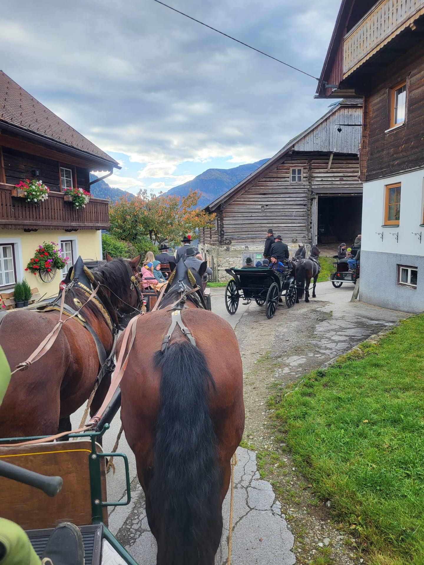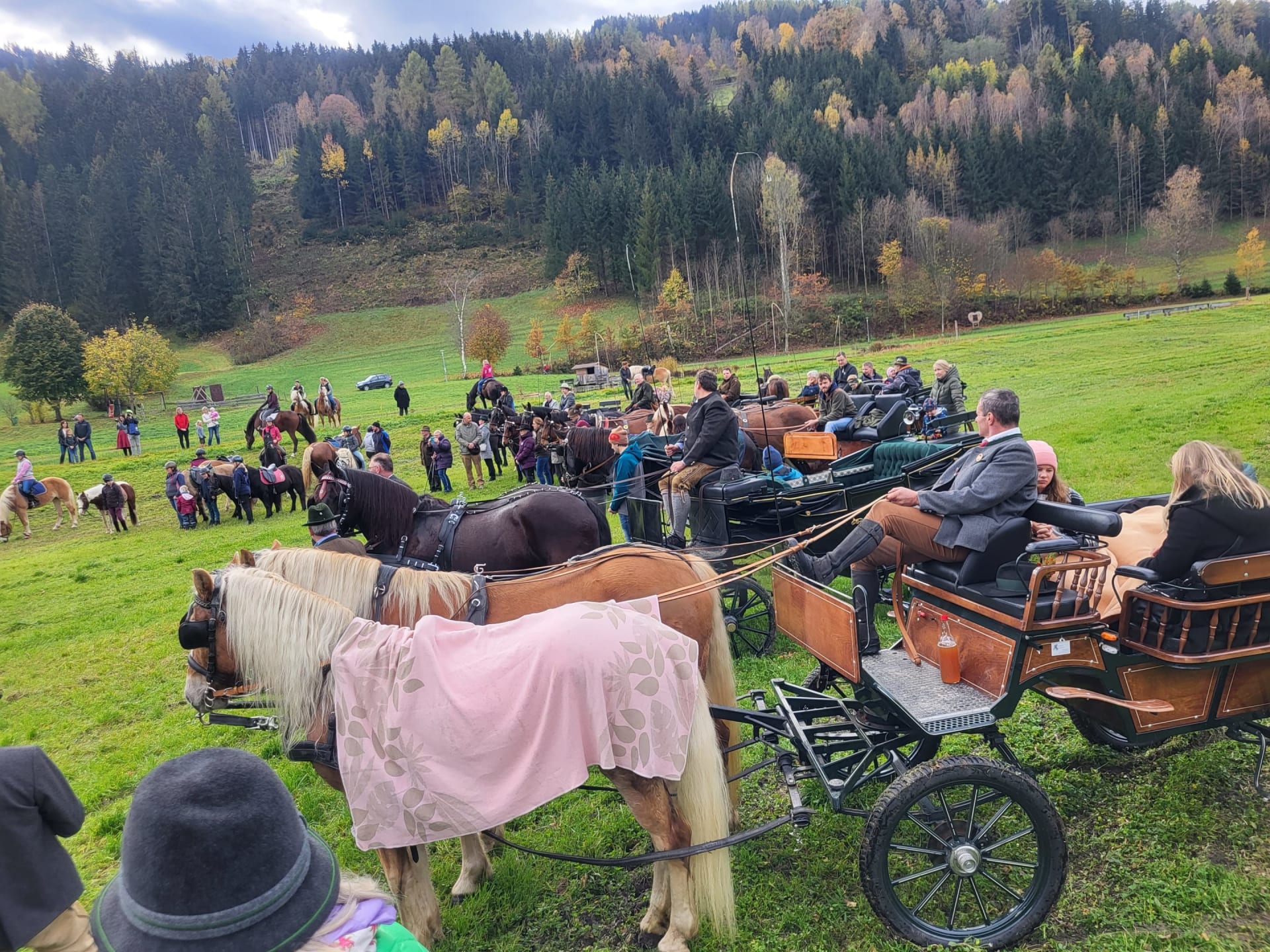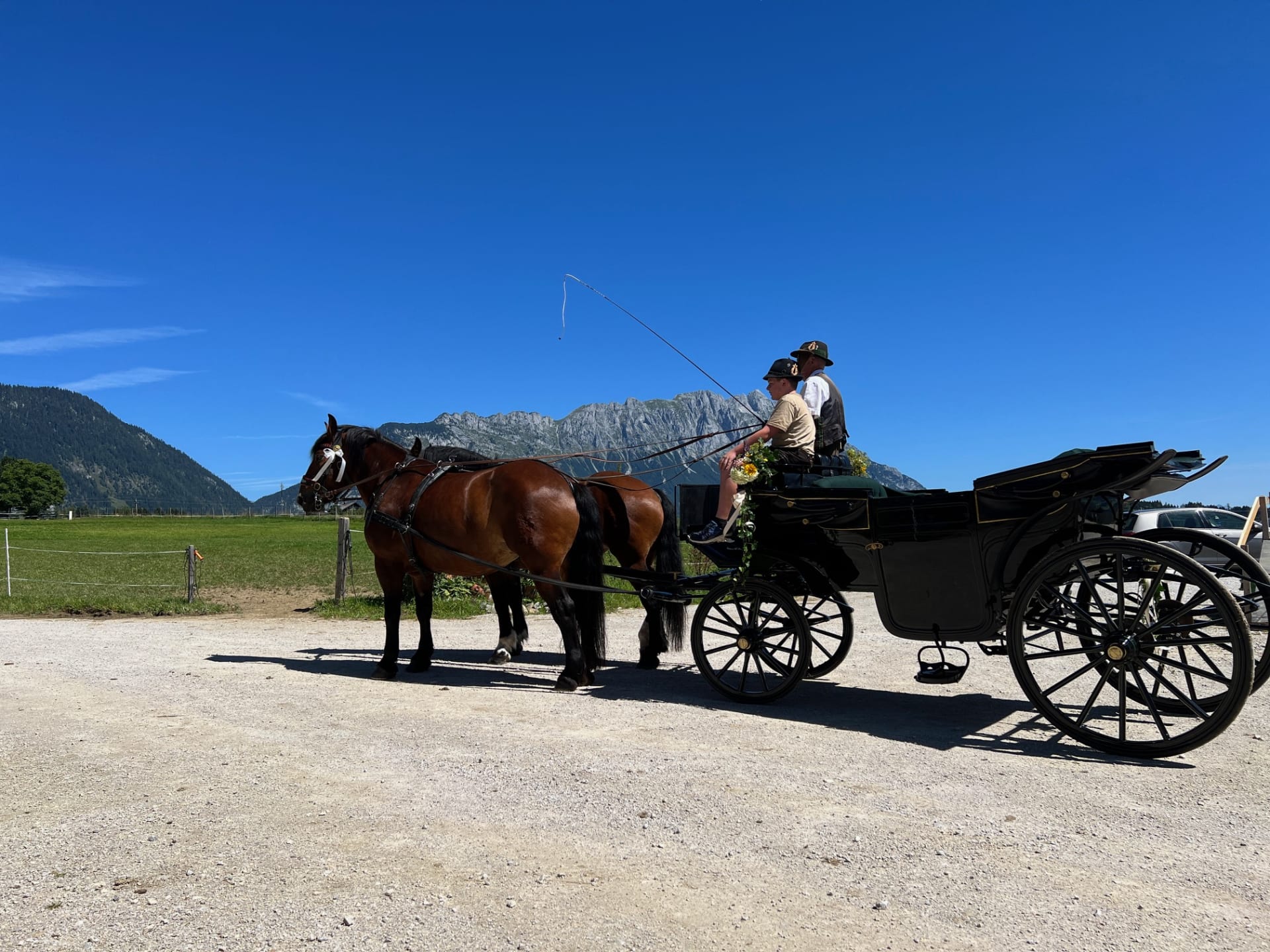 Mit unseren Norikern Belli und Lora kutschieren wir Sie gerne mit dem Pferdeschlitten durch unsere romantische Winterlandschaft.