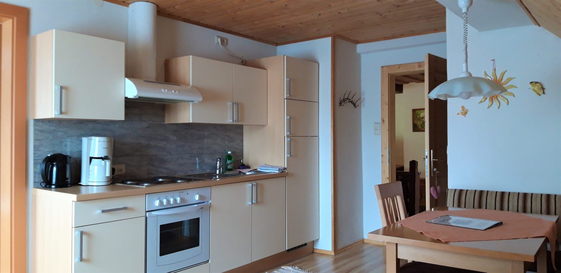 Die neuerrichtete Ferienwohnung besteht aus 1 Schlafzimmer mit DU/WC, ein separates WC und eine geräumige Wohnküche mit gemütlicher Sitzecke. Die Wohnlandschaft läßt sich als Doppelbett erweitern und bietet zusätzlich Platz für 1Person.