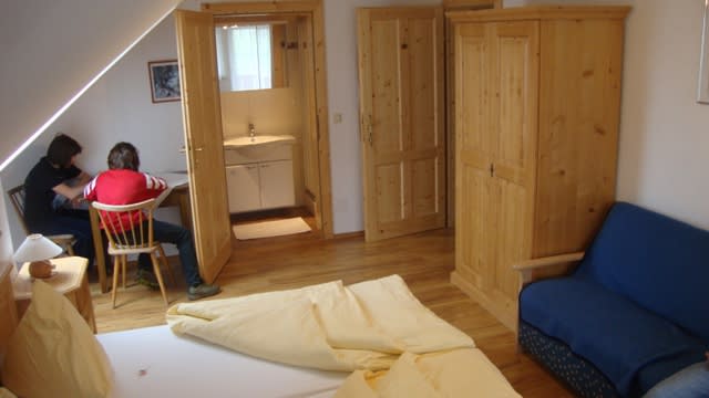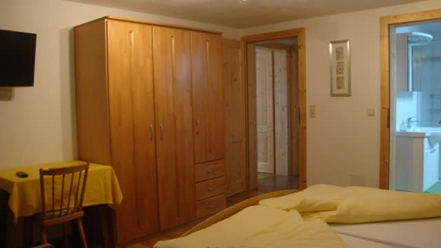 Neu renoviertes Zimmer im 1. Stock mit süd- und ostseitigem Balkon mit Blick auf die Niedrigen Tauern und die Schigebiete Hochwurzen und Reiteralm. Mit neuer Altholzeinrichtung, Doppelbett, Einzelbett und noch ausreichend Platz für ein Kinder- oder Gitterbett.
