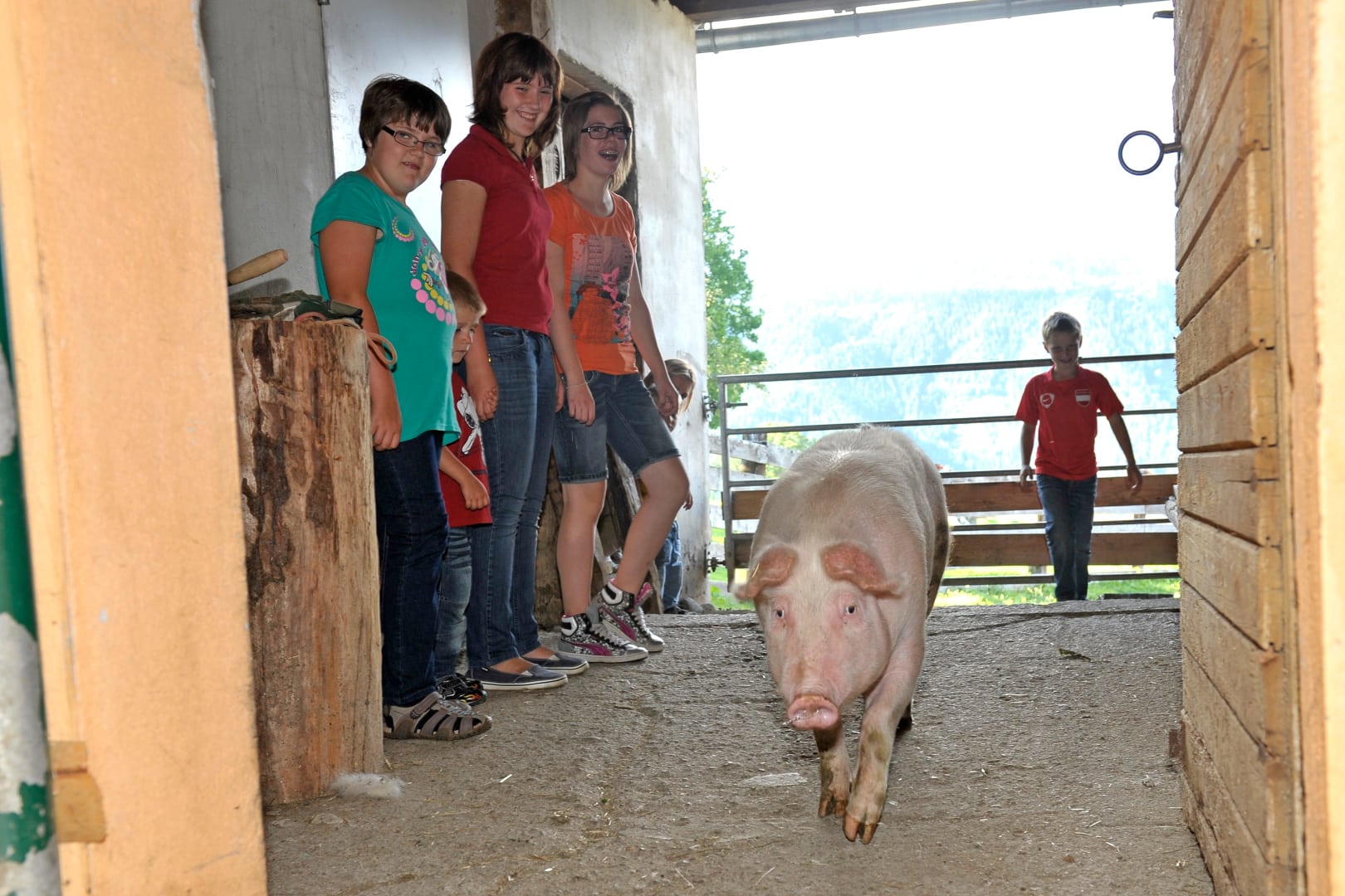 Am Hof gibt es von MO- FR Pony reiten und Tiere füttern, einmal pro Woche Lagerfeuer und Traktor fahren.
