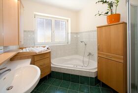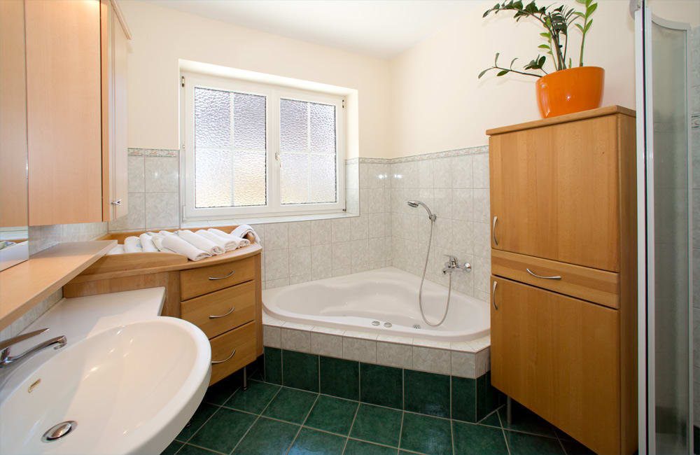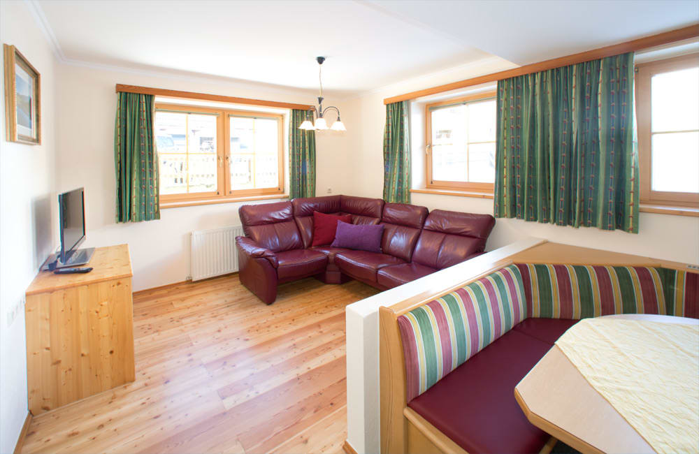 Das ebenerdige Appartement Reiteralm ist ausgestattet mit einer Wohnküche und einer gemütliche Sofaecke, Geschirrspüler und E-Herd. Das Badezimmer und das WC sind getrennt, Badewanne und Dusche. Zwei getrennt Zimmer, ein Elternschlafzimmer mit Ehebett und ein Kinderzimmer mit 2 Einzelbetten. Vorraum, Fön, Kabel-TV, Radio und gratis WLAN