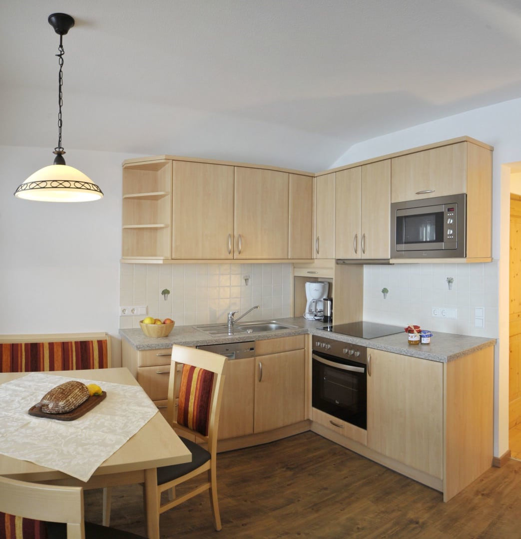 Das Appartement besteht aus einem großen Wohnschlafraum mit einem Ehebett, und einer offenen Küche. Es gibt eine Couch die auf Wunsch ausgezogen werden kann und für 2 Personen Platz bietet. Die Küche ist vollwertig ausgestattet mit Mikrowelle, Backofen, Geschirrspüler, 4 Herdplatten, Geschirr, Besteck, Töpfe, eine Kaffeemaschine und ein Wasserkocher.